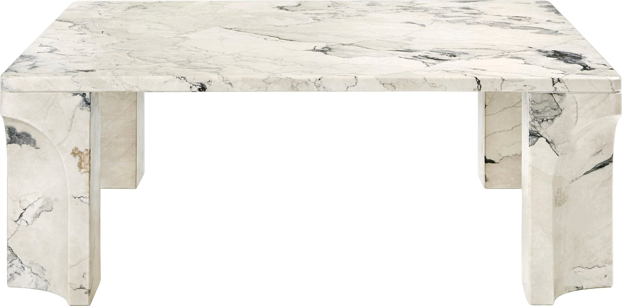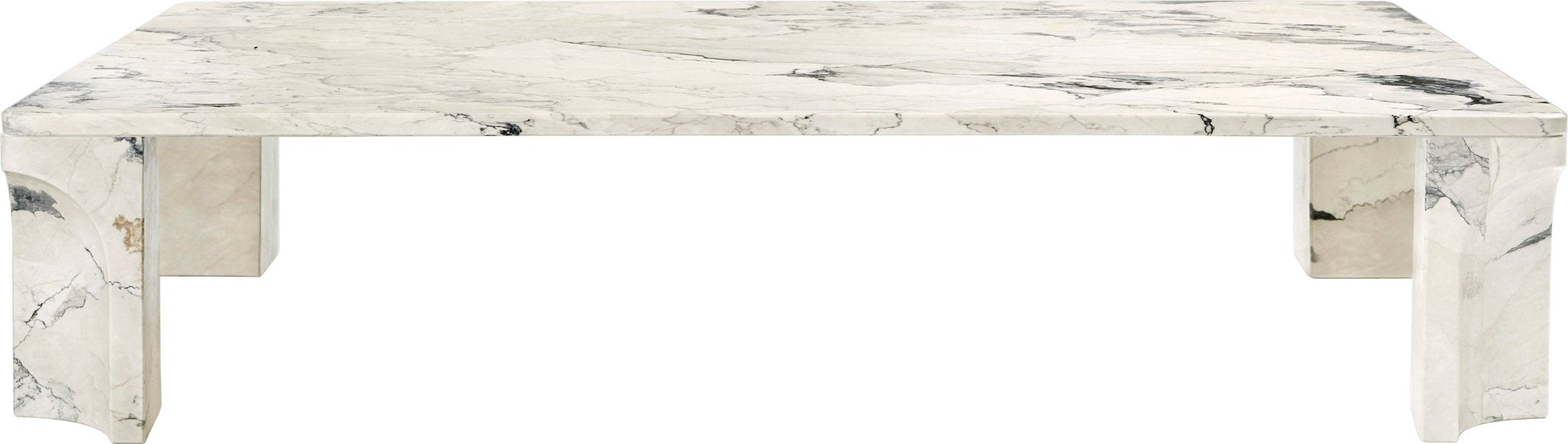 The pillar legs of the Doric Coffee Table are decorated with an indented niche - an homage to Greek and Roman architecture. This also adds dynamic shadow and movement to the overall composition, which creates intrigue, embraces tradition, and utilizes everything the material has to offer. Above all, symmetry defines this refreshingly minimalist coffee table as is seen in the clean lines, replicated leg details, and lyrical flow from top to bottom.