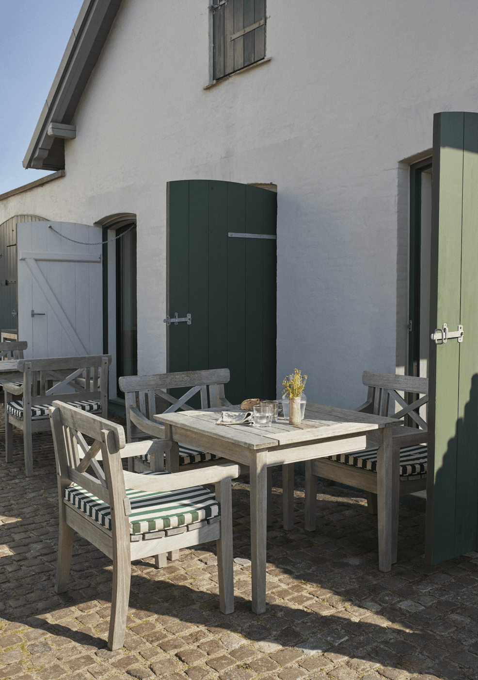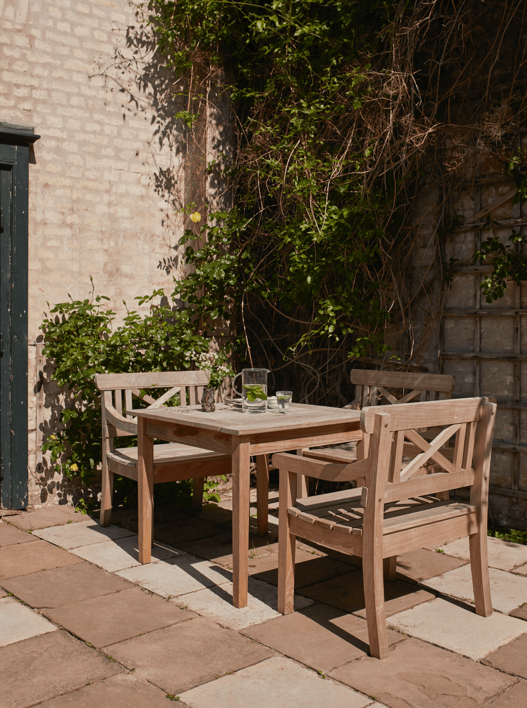 Measuring 33.9 inches in width, depth, and 28.4 inches in height, the Drachmann Table 34" provides ample surface space for dining and entertaining. The distinctive cross-back design adds a touch of traditional Danish craftsmanship. Additionally, the table pairs seamlessly with various seating options, allowing you to customize your outdoor area.