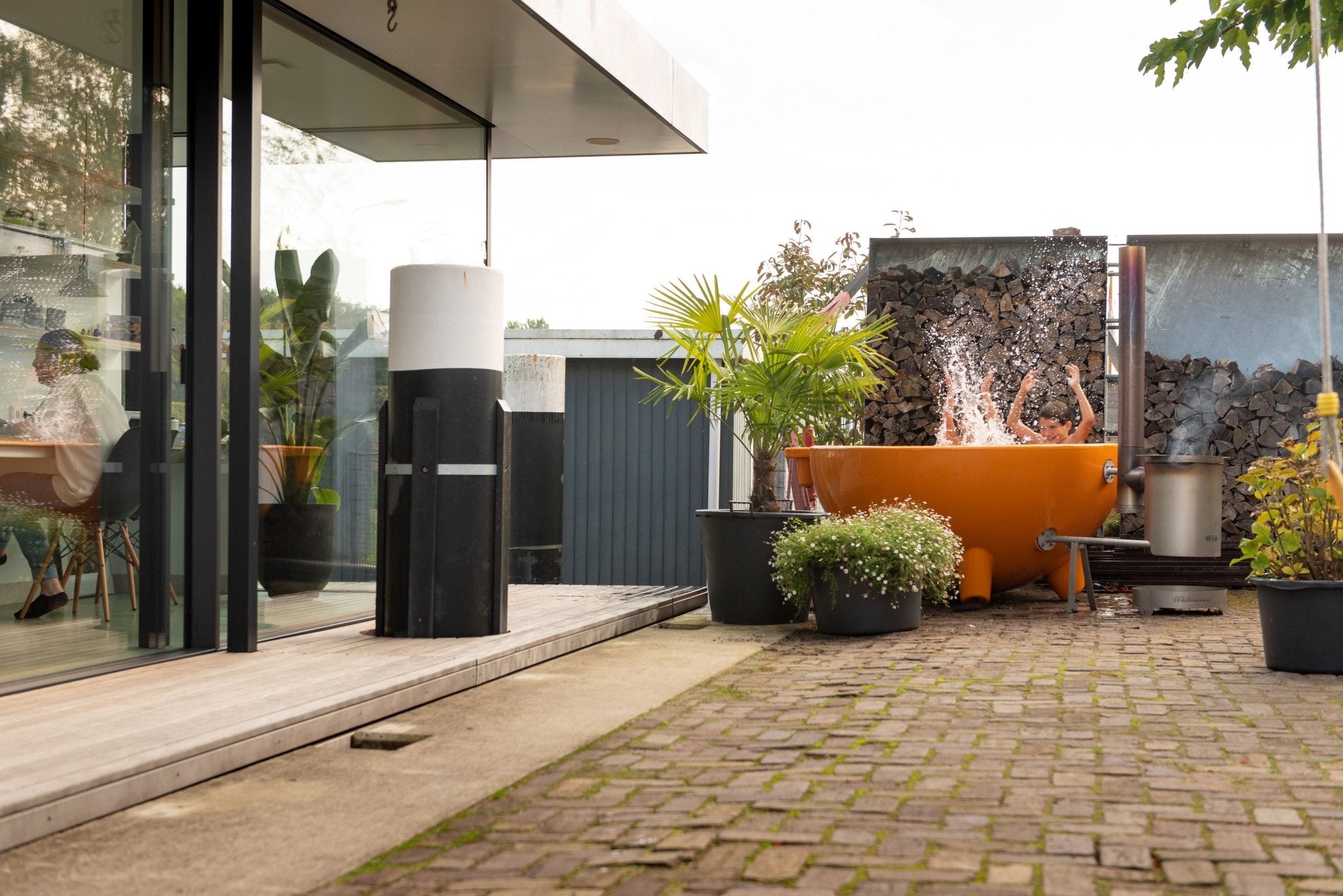 The Weltevree Dutchtub Original redefines outdoor soaking with its natural wood-fired heating system. It uses a stainless steel coil to warm water without electricity. This lightweight yet durable hot tub fits up to four adults. Whether set beside a garden or near an outdoor dining table, the Dutchtub Original adds modern outdoor patio furniture charm and cozy comfort to any space.