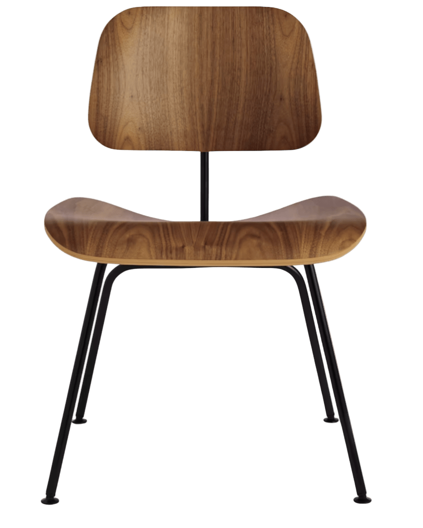 The chair’s form begins with two sculpted sheets of molded plywood, contoured to cradle the body with a gentle, flexible support. Its metal base adds an architectural counterpoint to the warmth of the wood, balancing organic form with industrial clarity. The result is a chair that feels grounded, modern, and enduringly human.