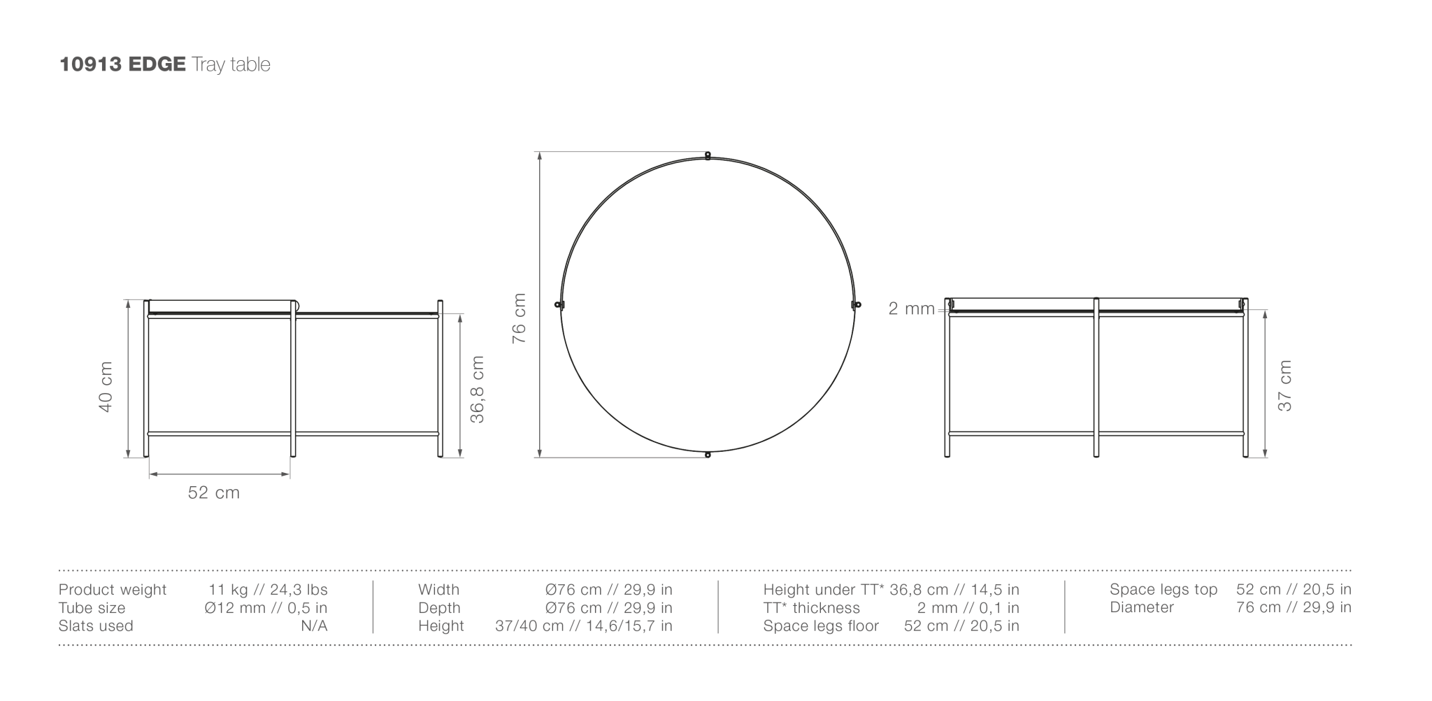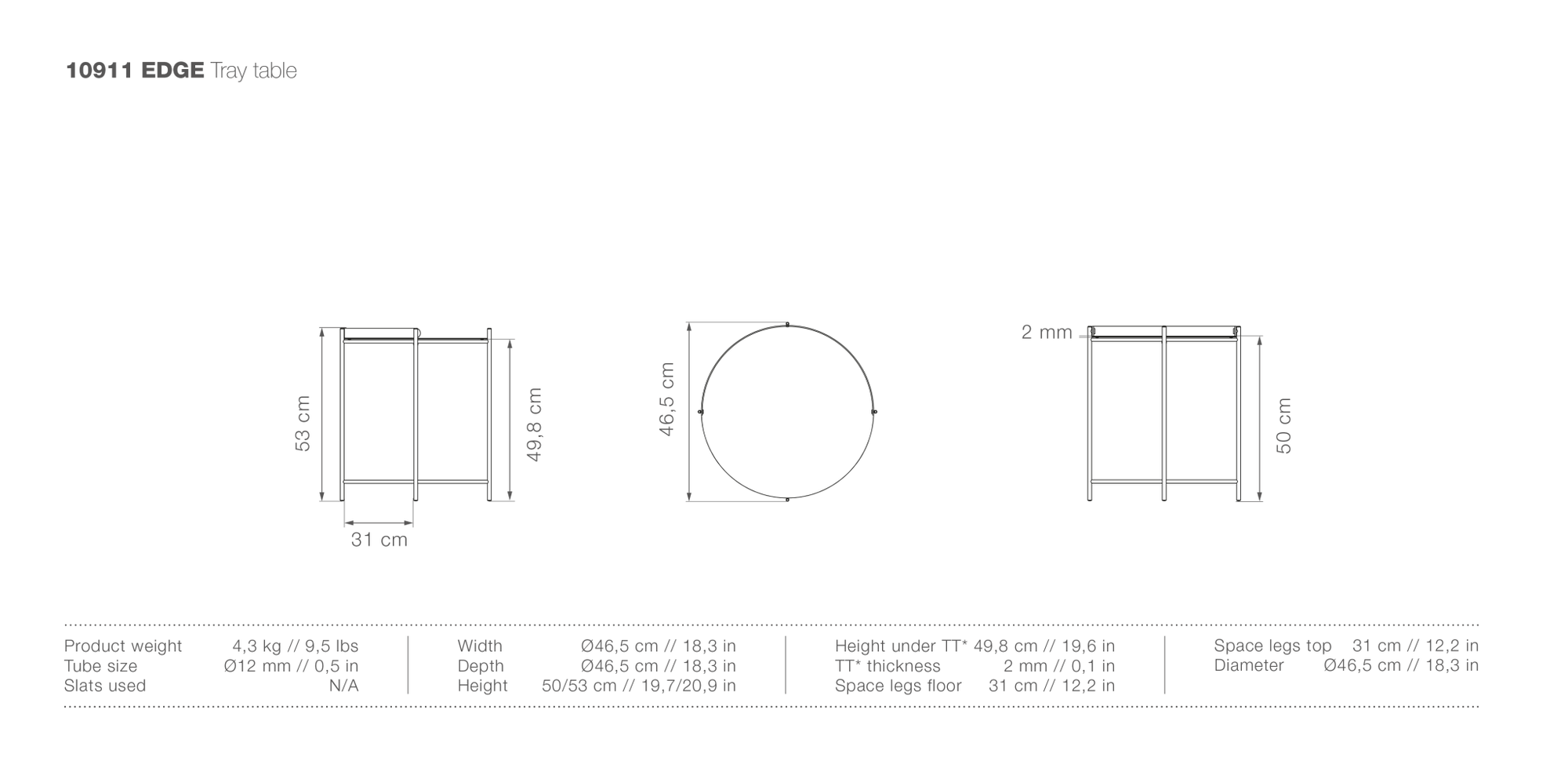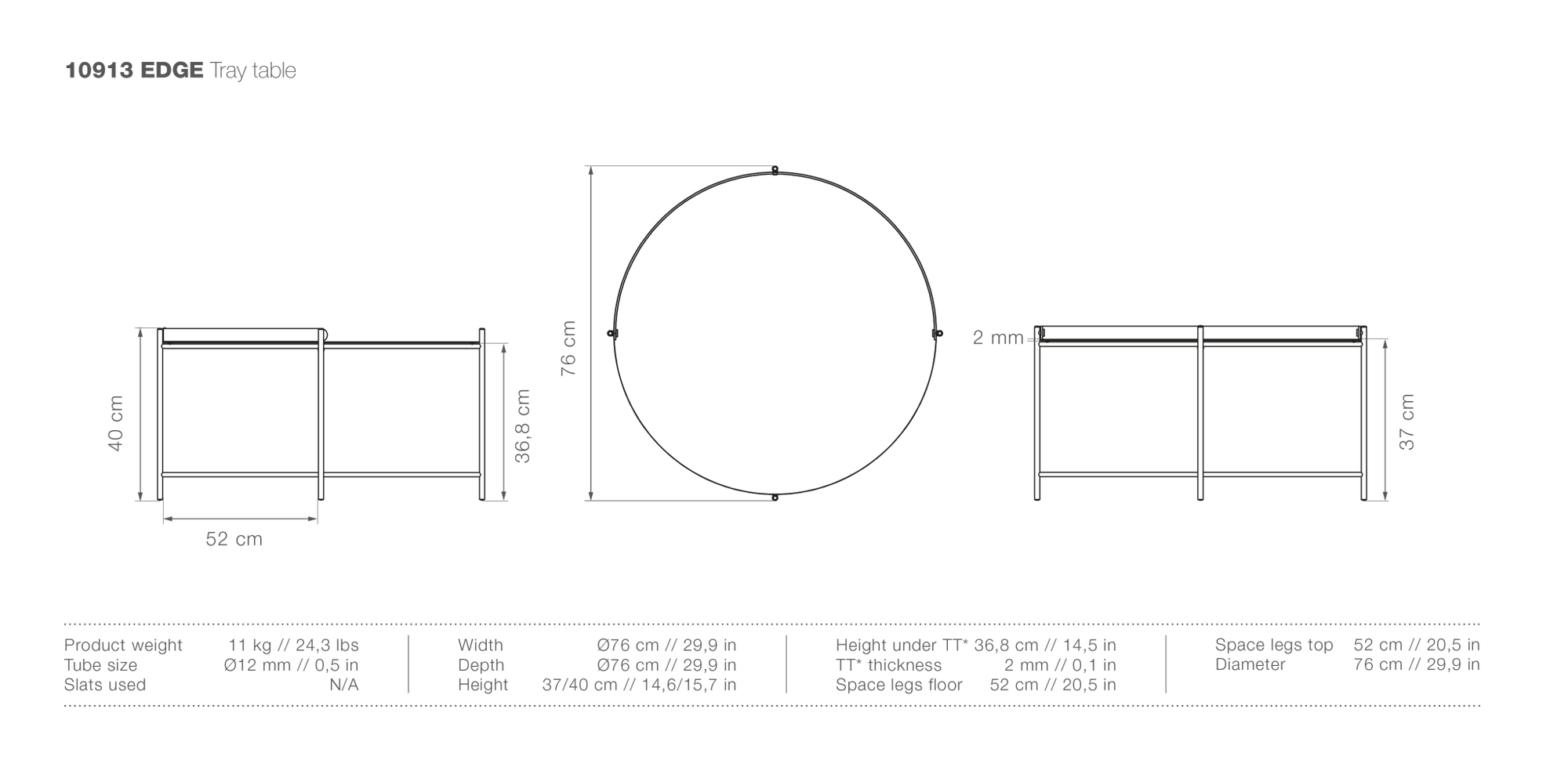- 29.9"Ø x 15.7"H