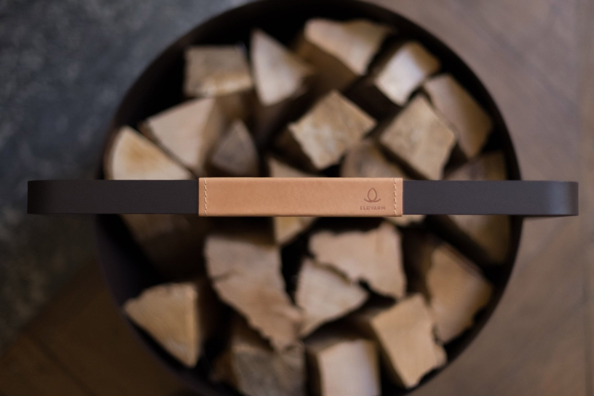 Founded on the principle that interiors should invite comfort and tranquility, and each piece of furniture should inspire harmony, Eldvarm designed the Emma Wood Basket. Sleek, powder-coated steel is formed into soft curves, wrapped in natural leather, and finished with brass details. Your firewood can stand within reach, contained within the tall sides of the elegant Emma Basket.