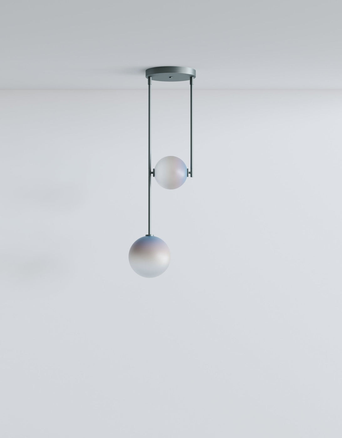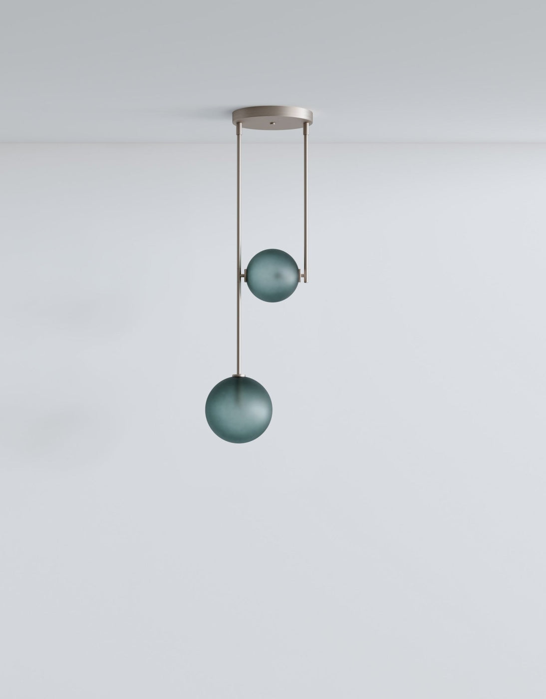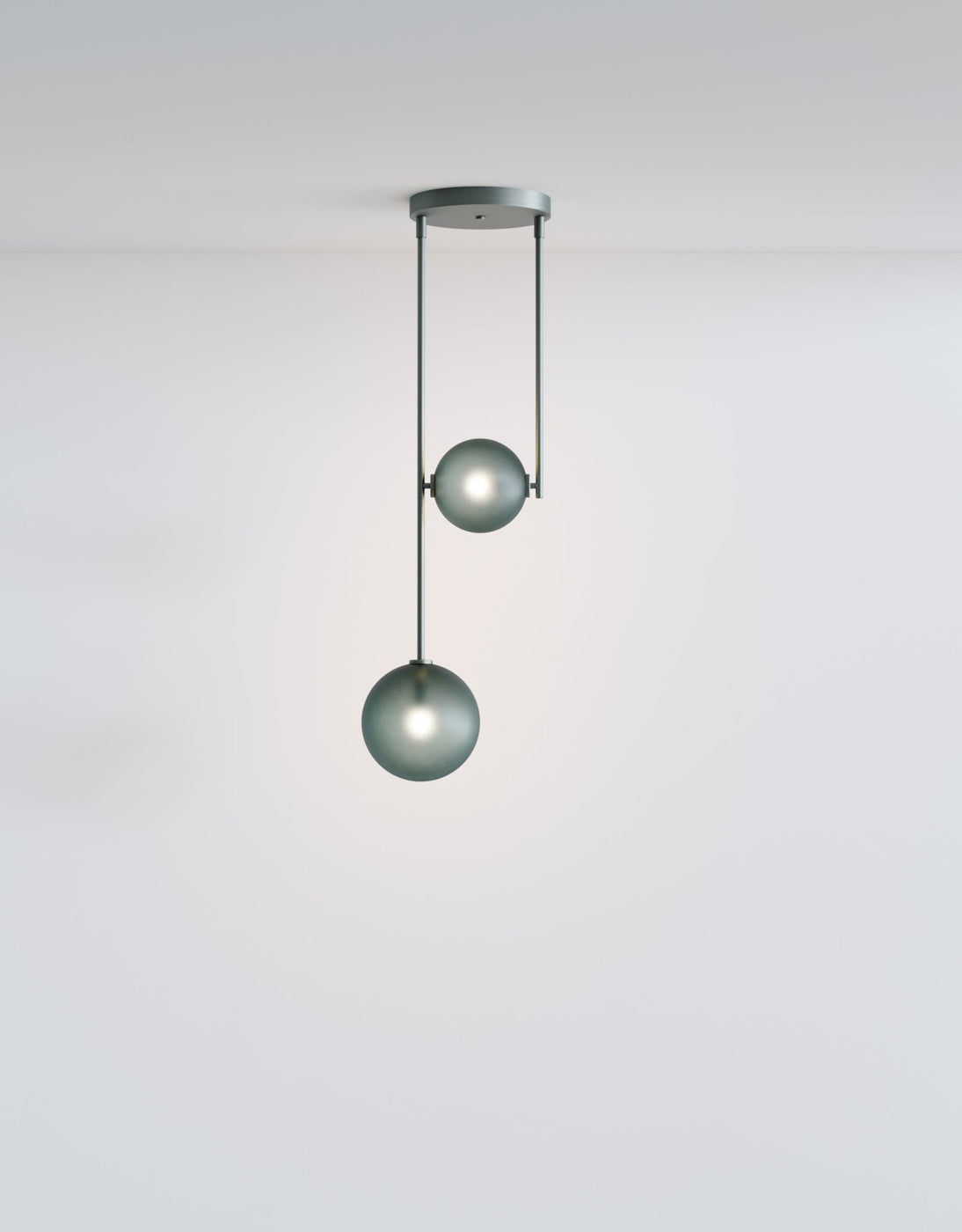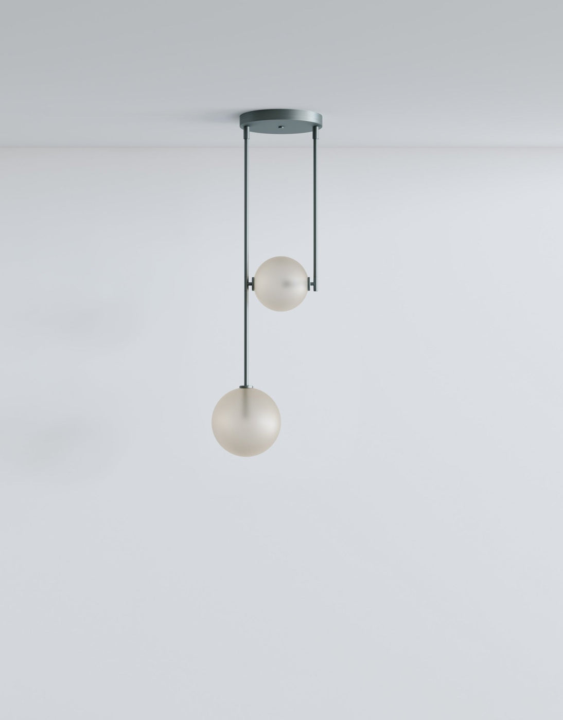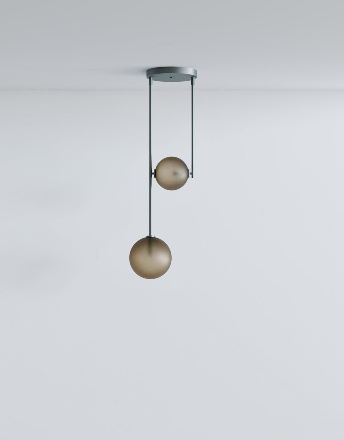 The L&G Equalizer 2 Piece showed up in 2016 when Dylan Davis and Jean Lee collaborated with their friend John Hogan on what they called "playful austerity" - basically making minimalist lighting that doesn't feel cold or boring. The setup uses anodized aluminum tubing as both the structure and the light source holder, with glass globes hanging at the ends. You get two pendants per set that can be configured however your space needs - symmetrical over a dining table, asymmetrical in a corner, flanking a bed, whatever works. The solid tubing suspension keeps everything clean and architectural instead of using cables or cords that clutter the look. Comes with a 12-inch round canopy that mounts to your ceiling, and the drop length is variable starting at 36 inches minimum so you can adjust based on ceiling height.