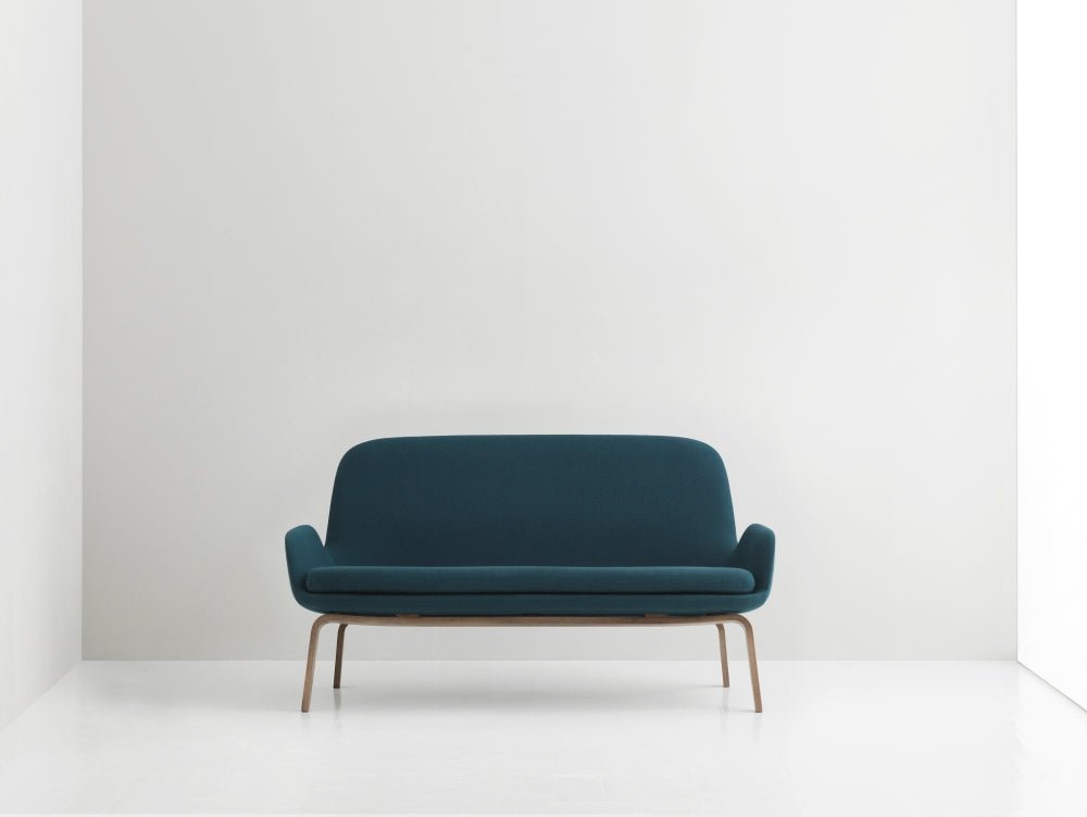 The Era Sofa with Wood Legs by Normann Copenhagen offers the perfect balance of elegance and comfort. Designed by Simon Legald, this two-seater features soft curves and sleek lines that create a refined yet inviting look. Inspired by the functionalist movement of the 1930s and '40s, its tight-fitted upholstery and solid wood frame ensure durability. Additionally, its minimalist design allows it to blend seamlessly into both contemporary and classic interiors.