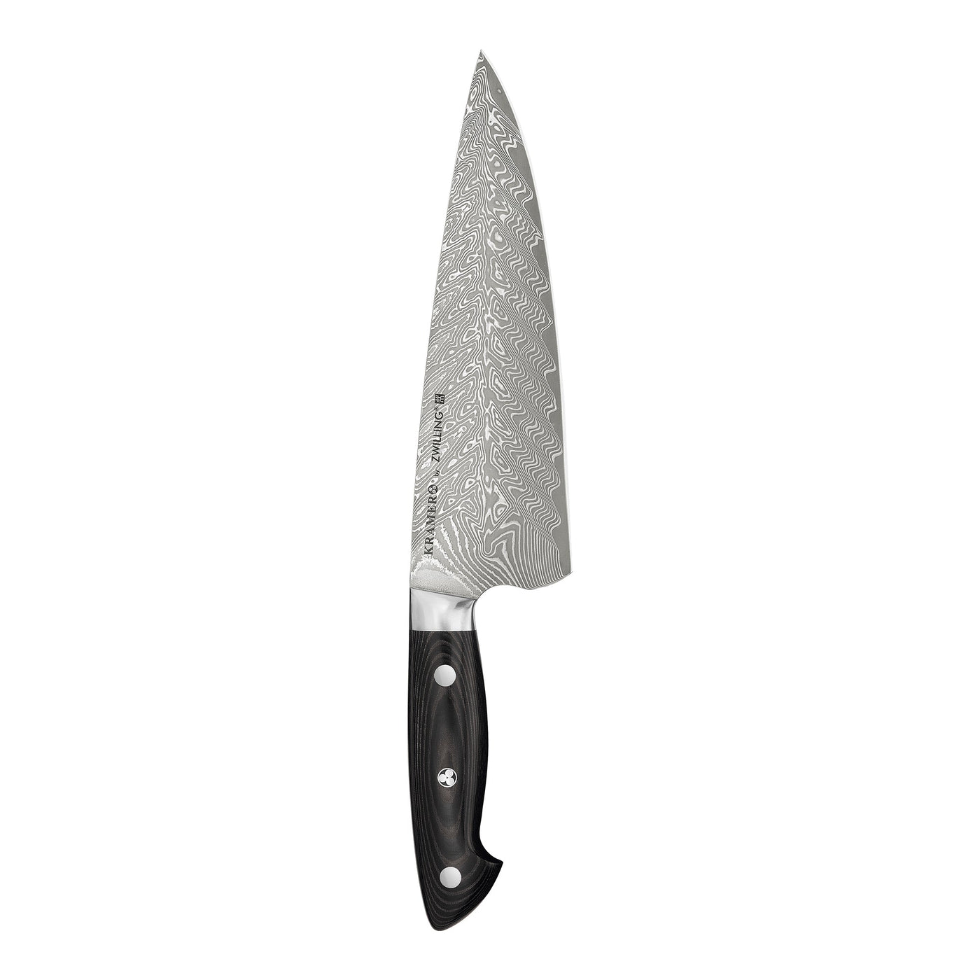 Designed with both performance and durability in mind, each Zwilling Kramer-Euroline Damascus Chef's Knife boasts an ice-hardened micro-carbide powder steel blade. This unique blade construction ensures superior edge retention and resistance to wear. Additionally, the wide, balanced blade design provides the perfect tool for a variety of kitchen tasks, from slicing to chopping. As a result, these knives not only perform flawlessly but also elevate the aesthetic of any kitchen, blending functionality with artistry and making them a must-have for culinary enthusiasts.