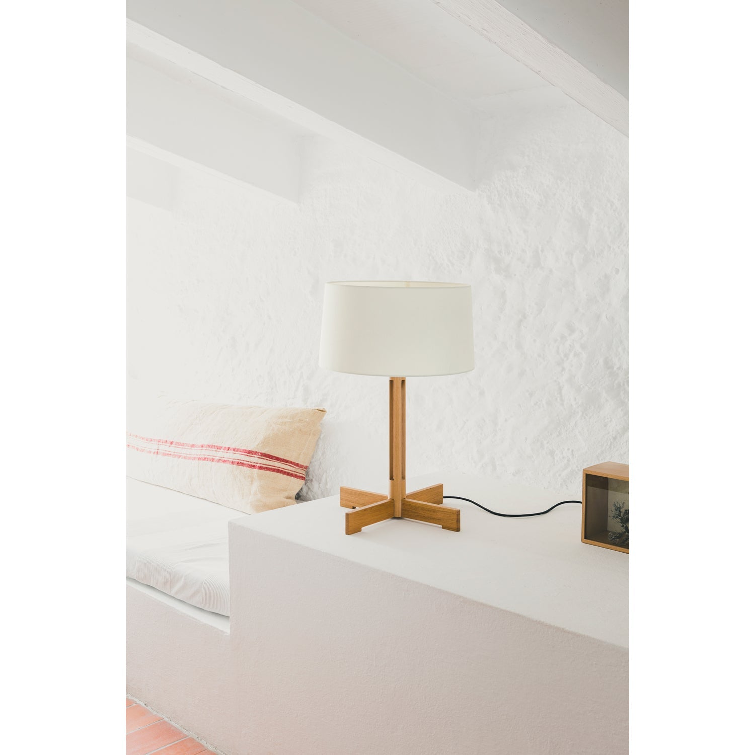 The Santa & Cole FAD Table Lamp combines classic craftsmanship with a simple, elegant design. Originally made for the FAD (Fostering Arts and Design) headquarters in Barcelona, it reflects both beauty and function. Its solid oak base, with carefully shaped vertical cutouts, supports a white linen shade that softens the light. This lamp works well on a credenza, next to a lounge chair, or beside a media console. Standing 24 inches tall, the FAD Table Lamp provides soft, even lighting. Its 8.3-inch-tall shade and 15.7-inch width gently diffuse light, creating a cozy atmosphere. It supports an E26 bulb up to 100W, allowing for adjustable brightness. Additionally, its timeless design blends well with modern furniture, Scandinavian lighting, and living room furniture. Whether used for reading or to create ambiance, this lamp adapts to different needs. Founded in Barcelona in 1985, Santa & Cole designs high-quality lighting that balances form and function. The brand works with top designers to create lasting pieces that enhance everyday spaces. Furthermore, its focus on durability and simplicity ensures timeless appeal. As a result, Santa & Cole continues to influence modern lighting and Scandinavian furniture. The FAD Table Lamp is a perfect example of their philosophy, offering both style and practicality.