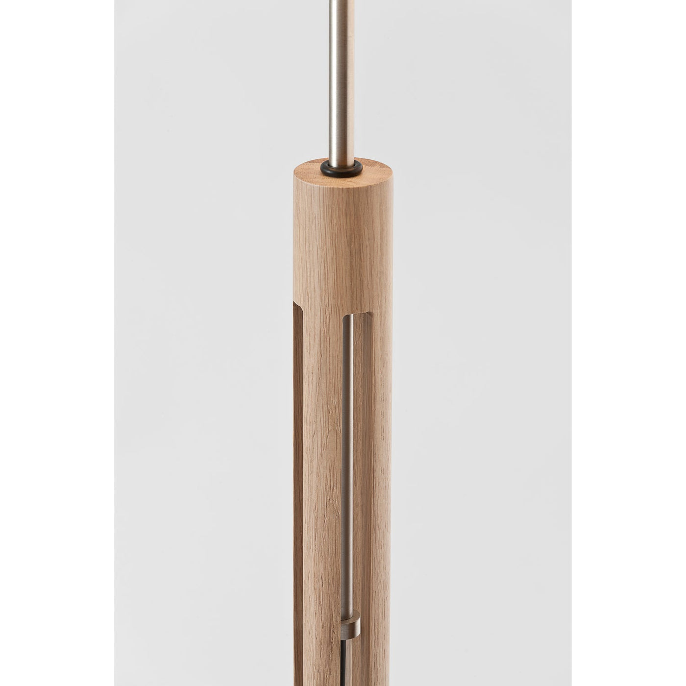 - Materials: Natural oak wood structure, White linen lampshade
