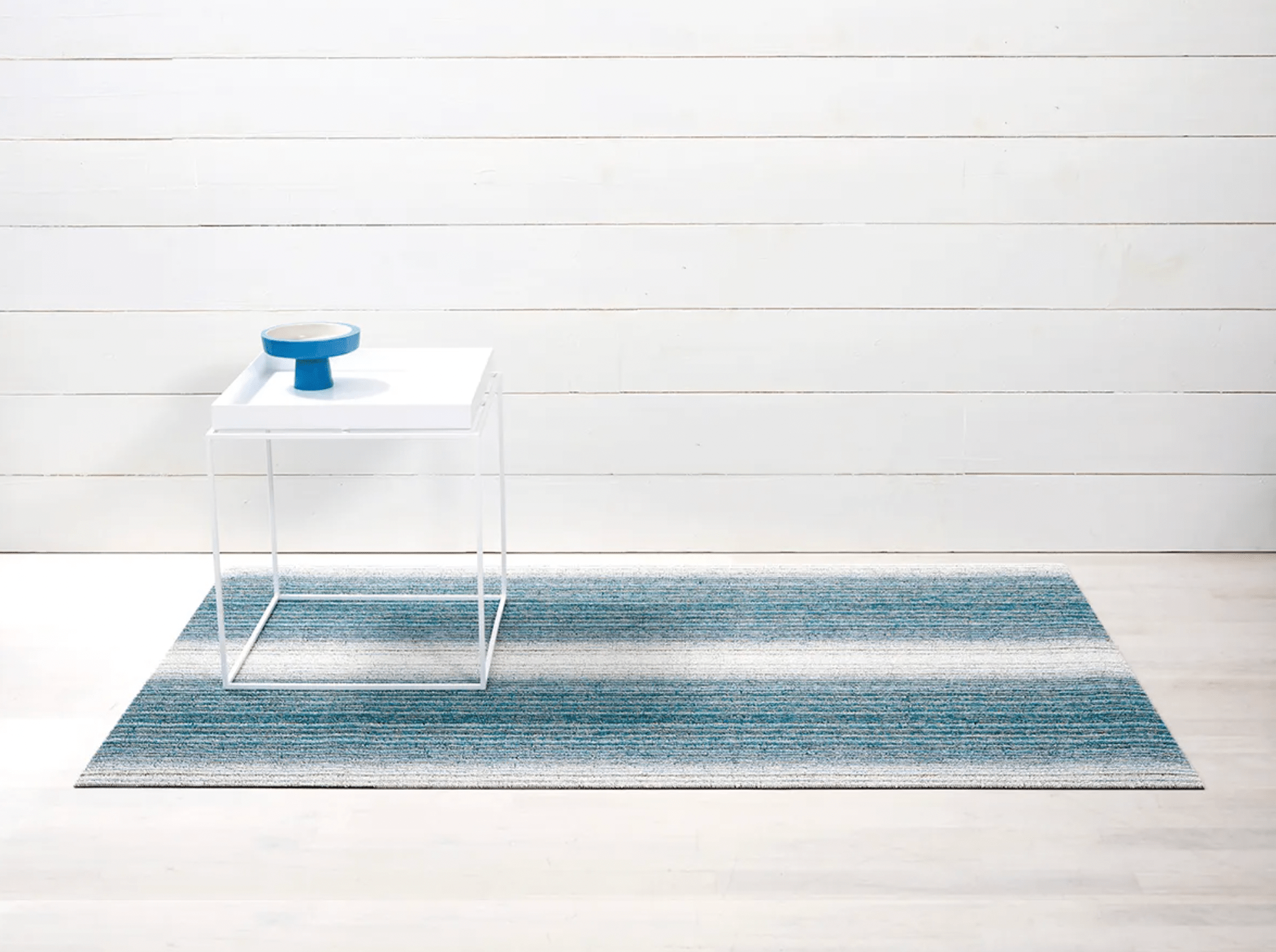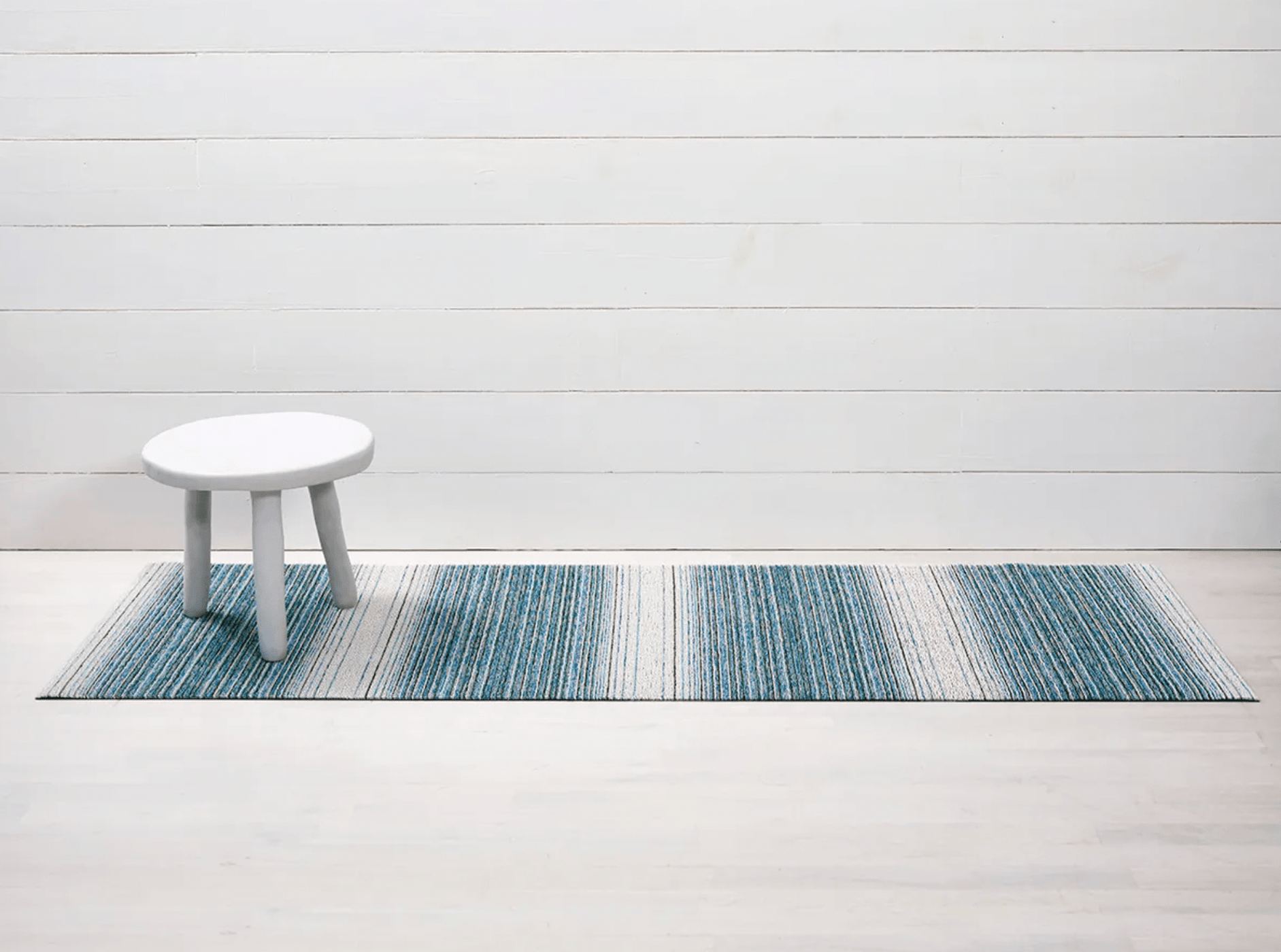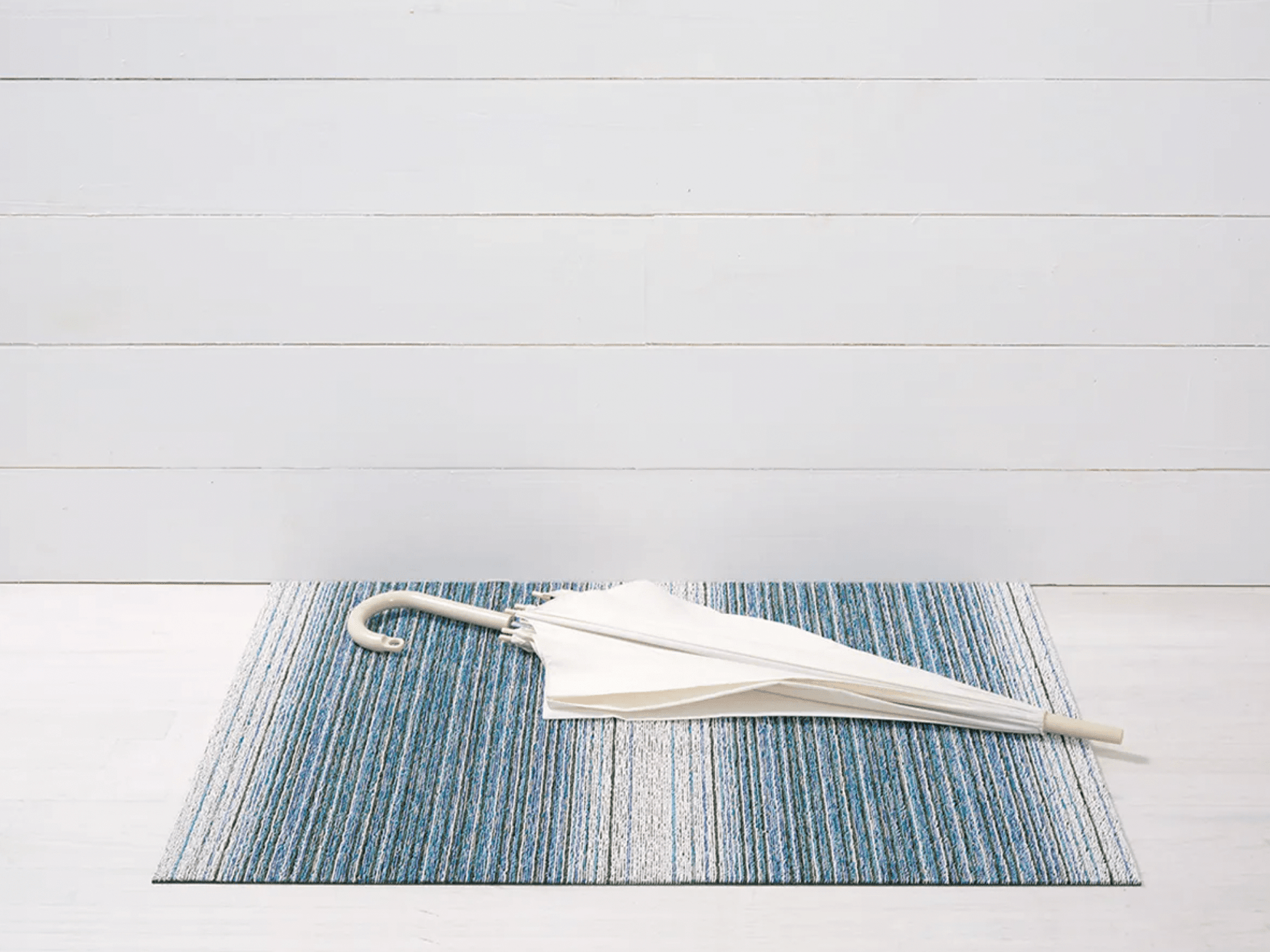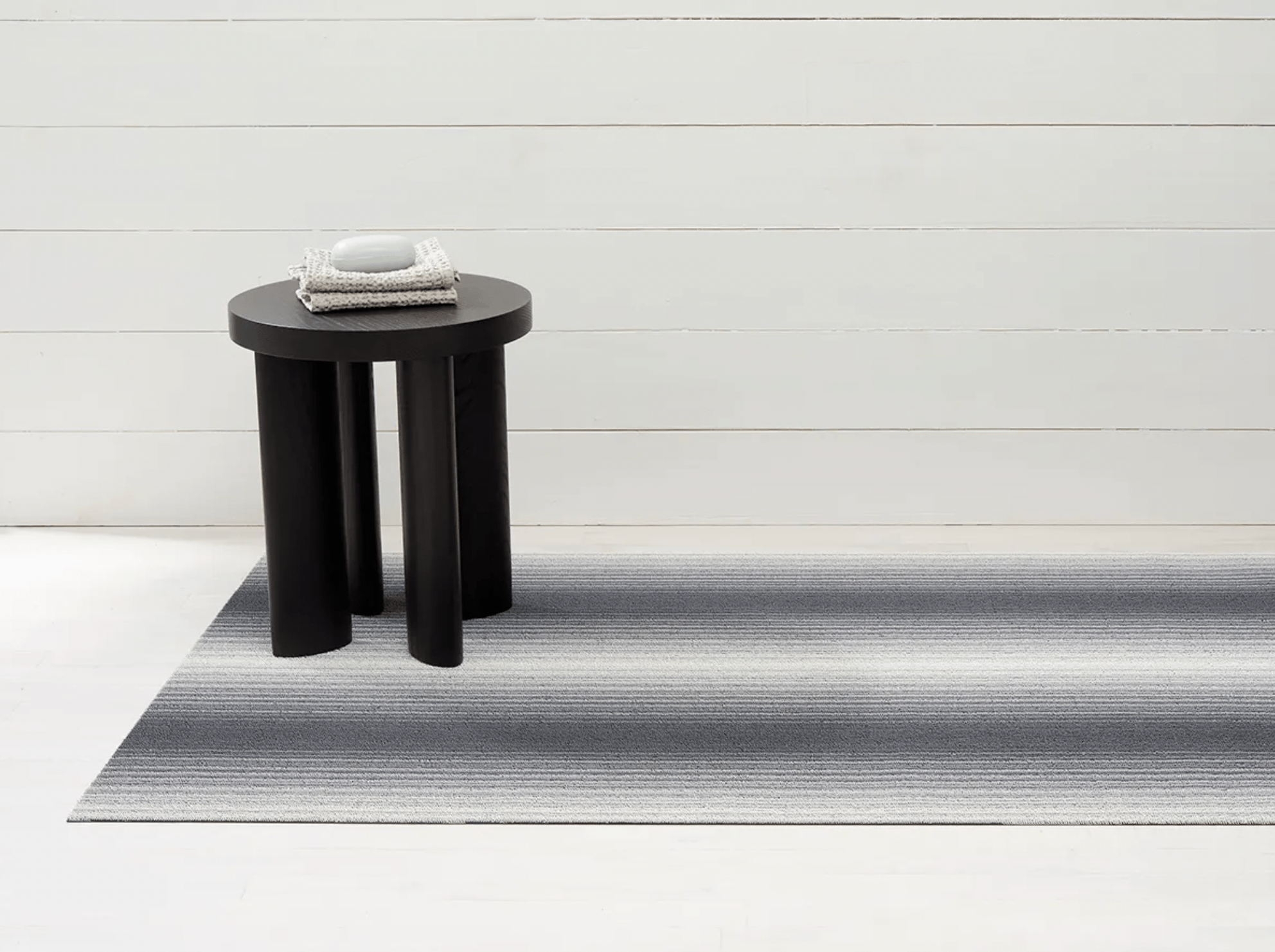 Inspired by the play of light and shadow created by shifting sunbeams, this easy-care floor mat redefines stripes through its dynamic ombré effect. Tufted bi-color yarns form fine lines of varying widths and intensities within a richly textured surface.