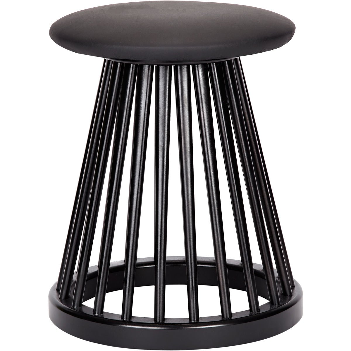 Creating an exclamation mark in the home, a fan stool is extended from our much loved Fan Chair - a dramatic and sculptural take on the traditional British Windsor Chair. The Fan Stool is formed from machined wooden spindles and topped with a black leather seat. Available in black birch with a black leather seat or natural oak with a black leather seat. Assembly required.