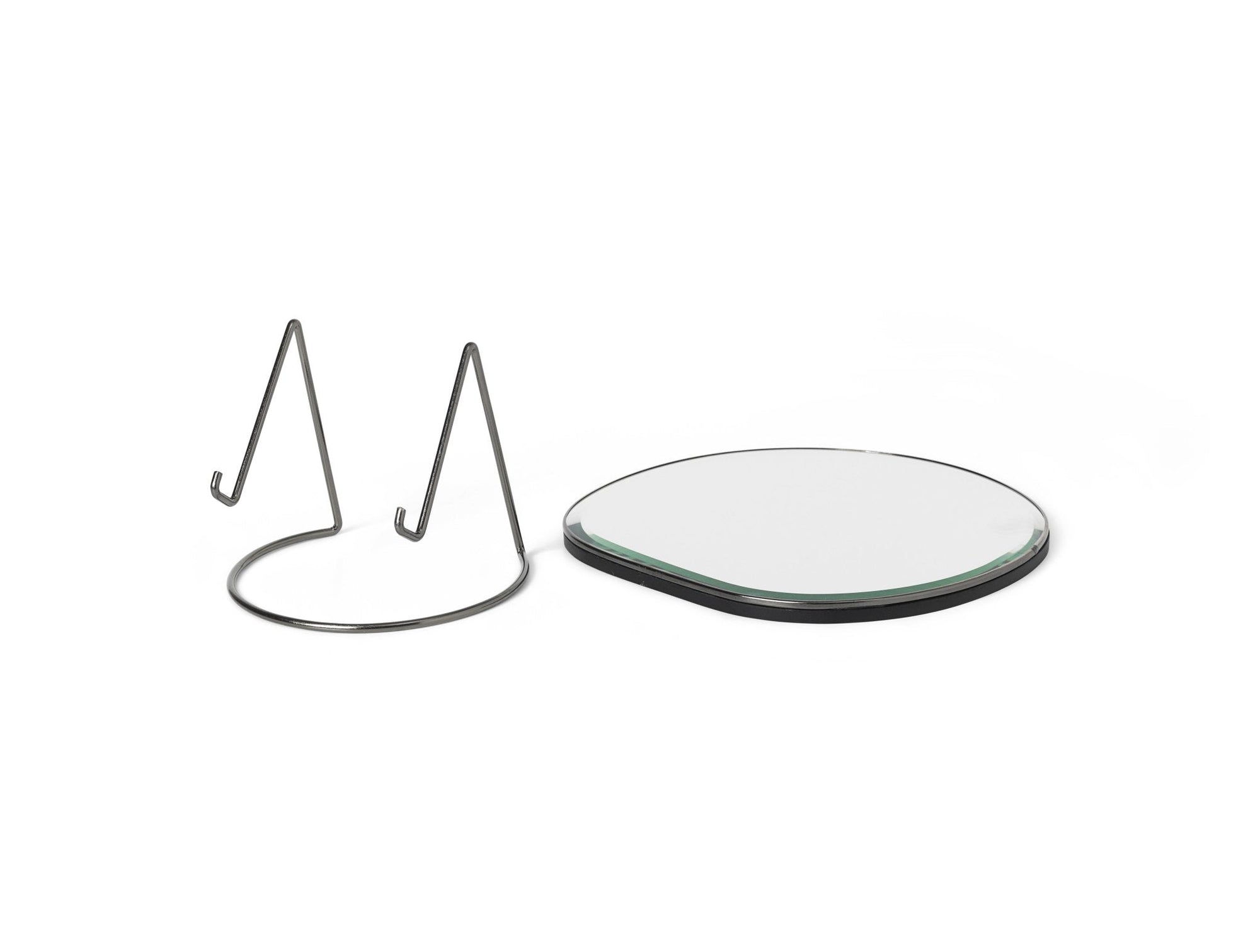 The Ferm Living Pond Mirror, set on a sleek, detachable metal stand, reimagines the classic mirror with its unique asymmetrical silhouette. Inspired by the flowing shapes of water, this organically designed mirror adds a touch of intrigue and elegance to any surface.
