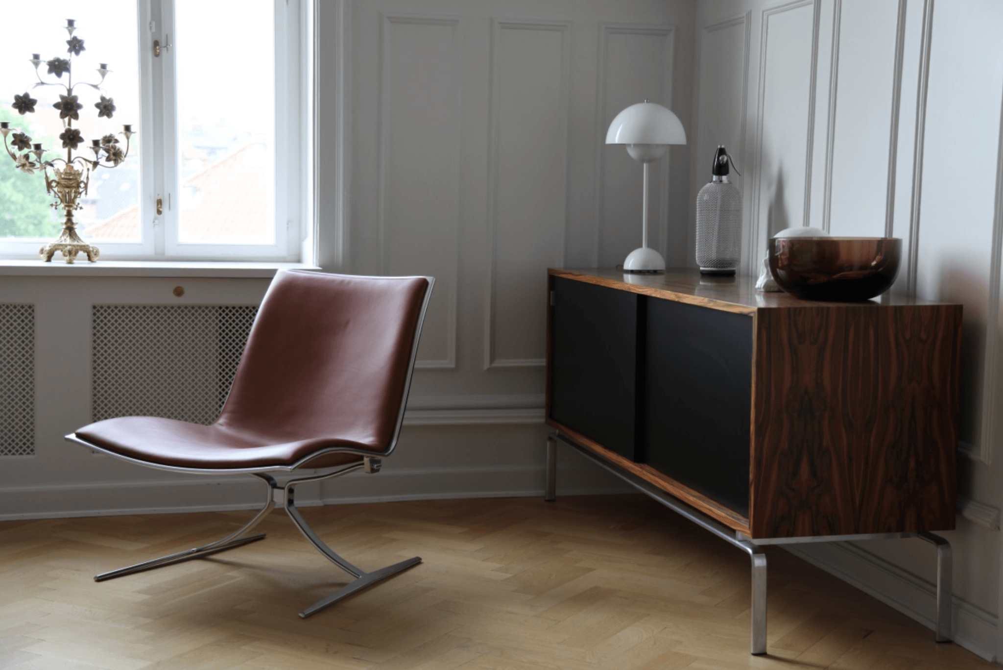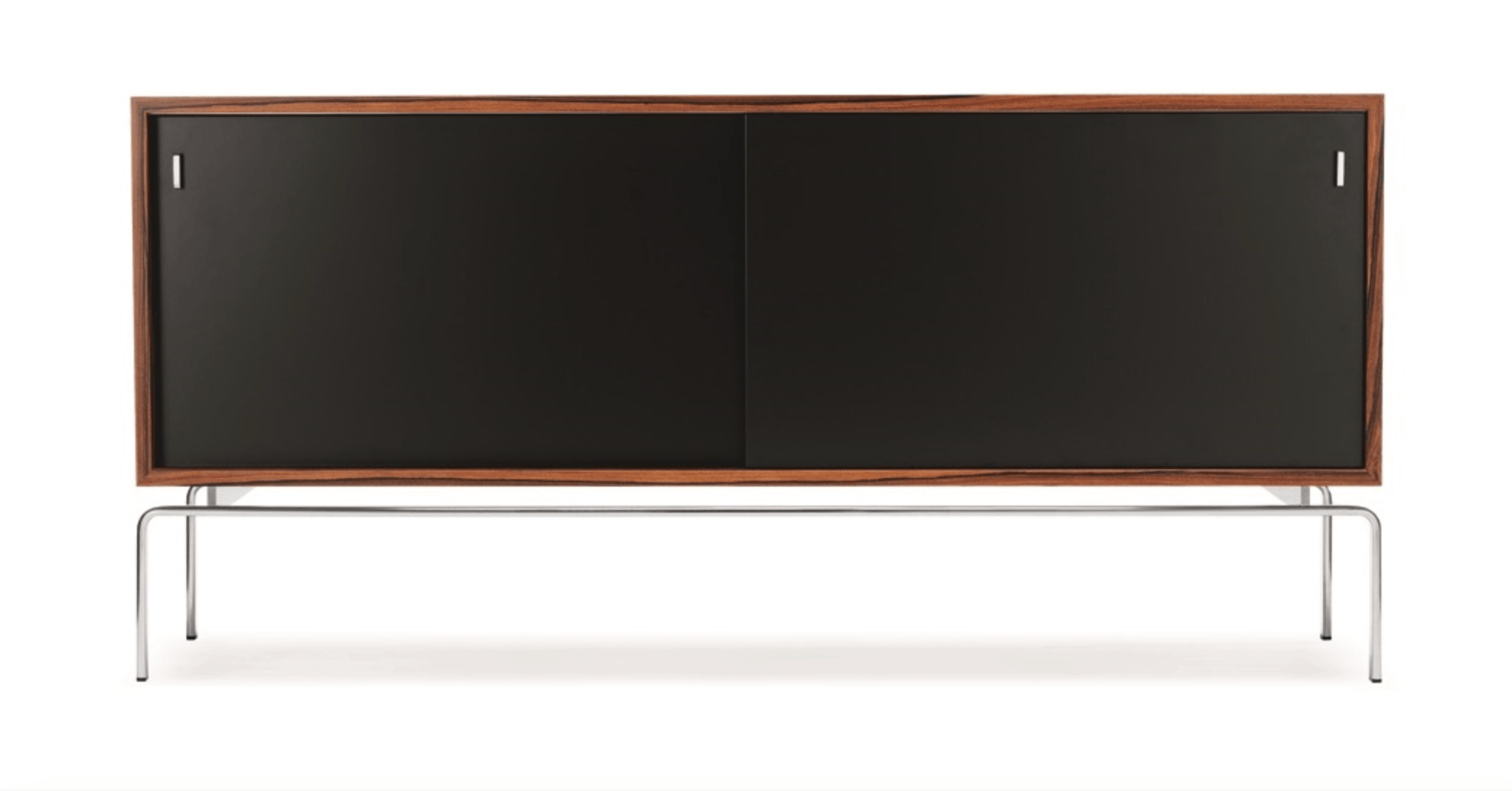 The Lange Production FK 150 Sideboard, designed in 1965 by Preben Fabricius & Jørgen Kastholm, is a striking example of functional minimalism. Featuring a sleek chrome-plated steel base and your choice of oak, olive ash, or palisander wood, it’s ideal for storing essentials without sacrificing visual clarity. Whether used as a media console or a refined credenza, the FK 150 Sideboard adds balance and depth to any modern furniture arrangement. Because of its clean lines and timeless palette, the FK 150 Sideboard fits effortlessly into a variety of settings. Place it in your living room with sculptural ceiling lights, or next to a bold modern sofa for contrast. Additionally, it pairs beautifully with accessories like a carafe, wine glass, or sleek table lamp. This versatile piece blends seamlessly with Scandinavian furniture, offering both style and function. Lange Production manufactures the FK 150 Sideboard using original 1960s tools and craftsmanship. Unlike trend-driven brands, Lange Production focuses on timeless form and material integrity. Their dedication to iconic Danish design—especially the work of Fabricius & Kastholm—ensures that each piece becomes a lasting investment. As a result, their collections remain at the heart of Scandinavian furniture heritage.