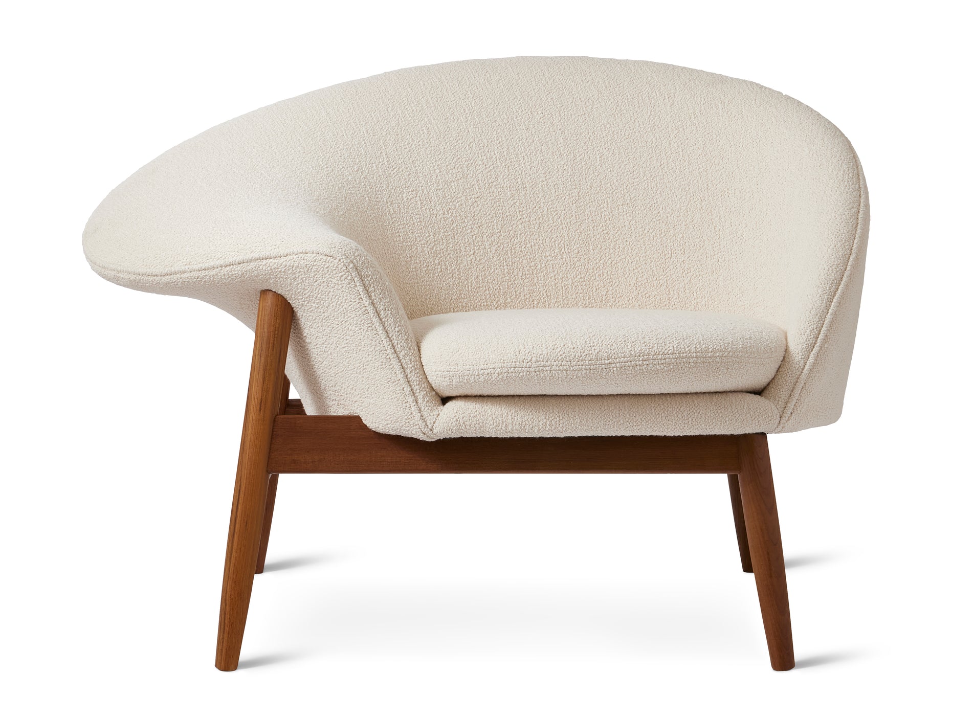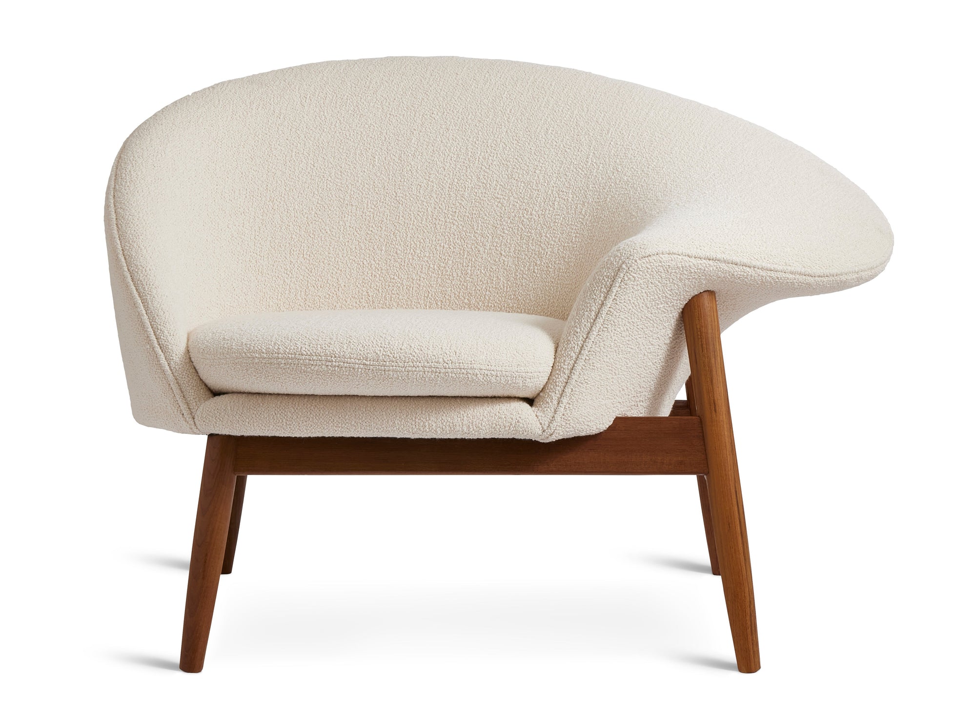 The asymmetrical swooping shape of the Fried Egg Lounge Chair makes it the quintessential lounge for reading corners, living rooms, and more. Available in a variety of upholstery options, the Fried Egg Lounge Chair is the perfect, whimsical addition to a modern home. Designer Hans Olsen had a penchant for creating furniture packed with personality, so the Fried Egg Lounge Chair’s unique silhouette—mimicking a fried egg’s amorphous shape—perfectly captures the Mid-century designer’s mission while defining an elegant furniture icon. Pair the Fried Egg Lounge Chair with the Fried Egg Sofa and enjoy a full afternoon of relaxing and reading before the two become a conversation piece for dinner guests.