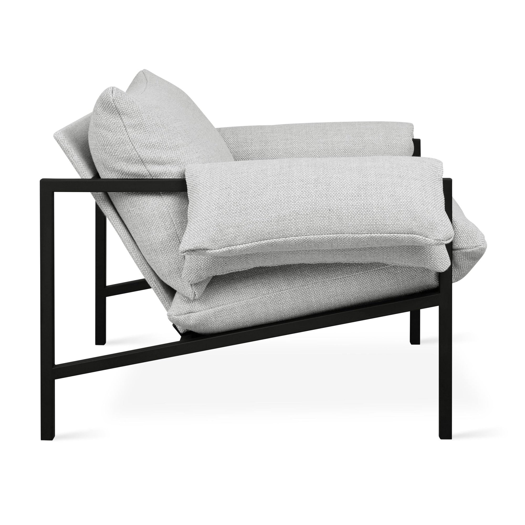 Ease back and relax with the Fulton Chair, a study in aesthetic balance and proportion that contemporizes Brazilian Mid-century style. Cushion-wrapped arms and plush, organic upholstery take the edge off a sturdy steel foundation, angled precisely to achieve just the right combination of comfort and support. The mixed materials work harmoniously to create an original design that will draw you in and soothe both body and mind. Works well in pairs and is suitable for residential or commercial interiors.