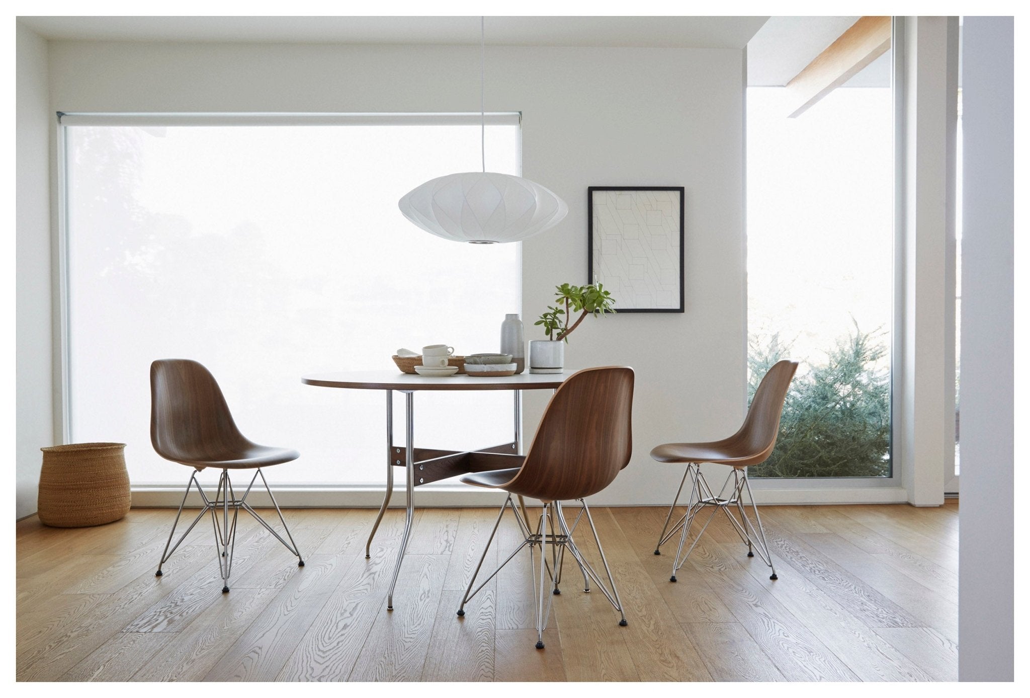 The Herman Miller Nelson® Bubble Pendant – Crisscross® Saucer® is a mid-century lighting icon that adds warmth and style to any space. Originally designed by George Nelson in 1952, it features a crisscross pattern that creates texture while diffusing light evenly. With a translucent polymer shade and steel wire frame, it produces a soft, glare-free glow. Because of its sculptural design, it works as both a functional light and a statement piece.