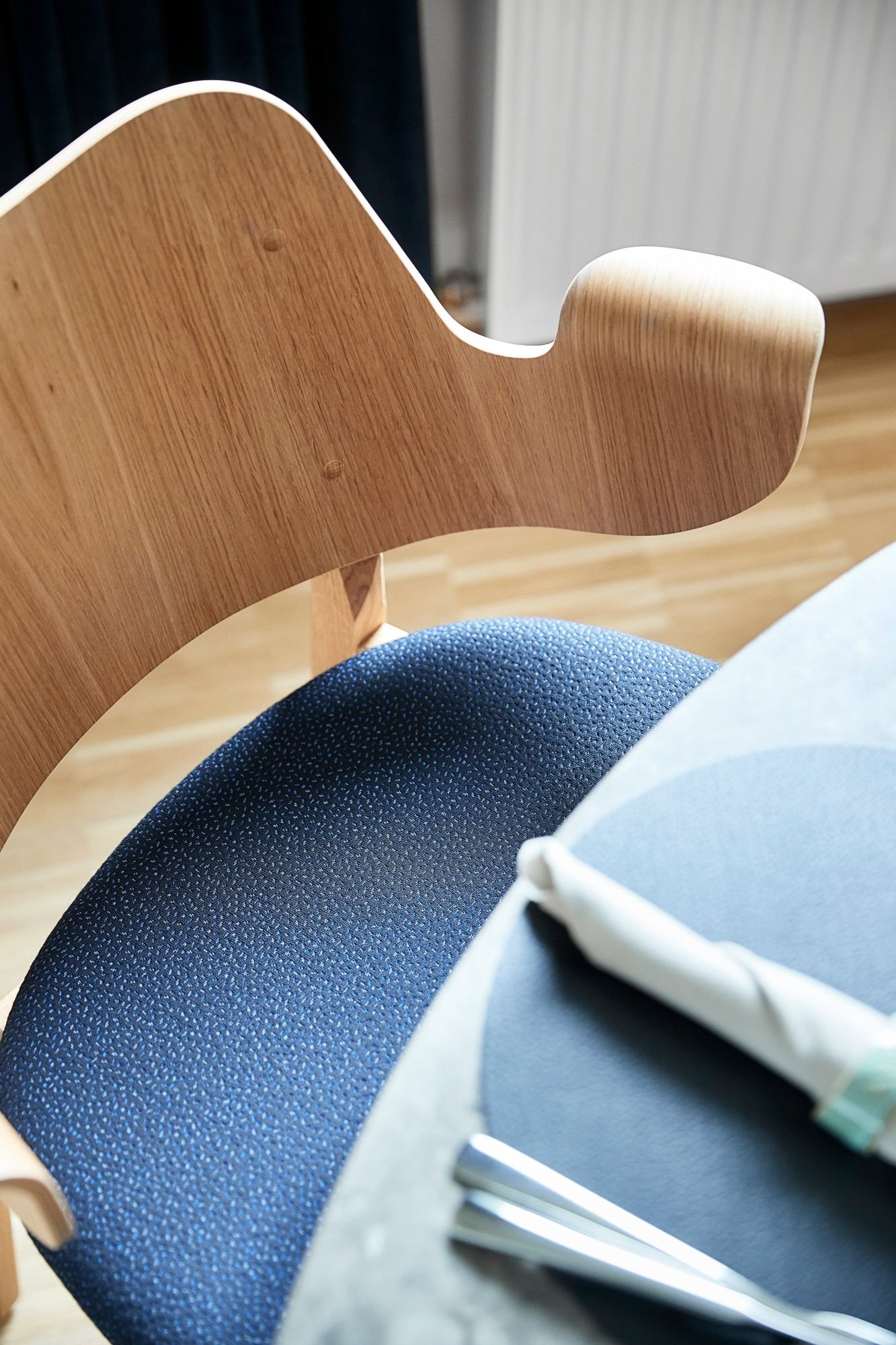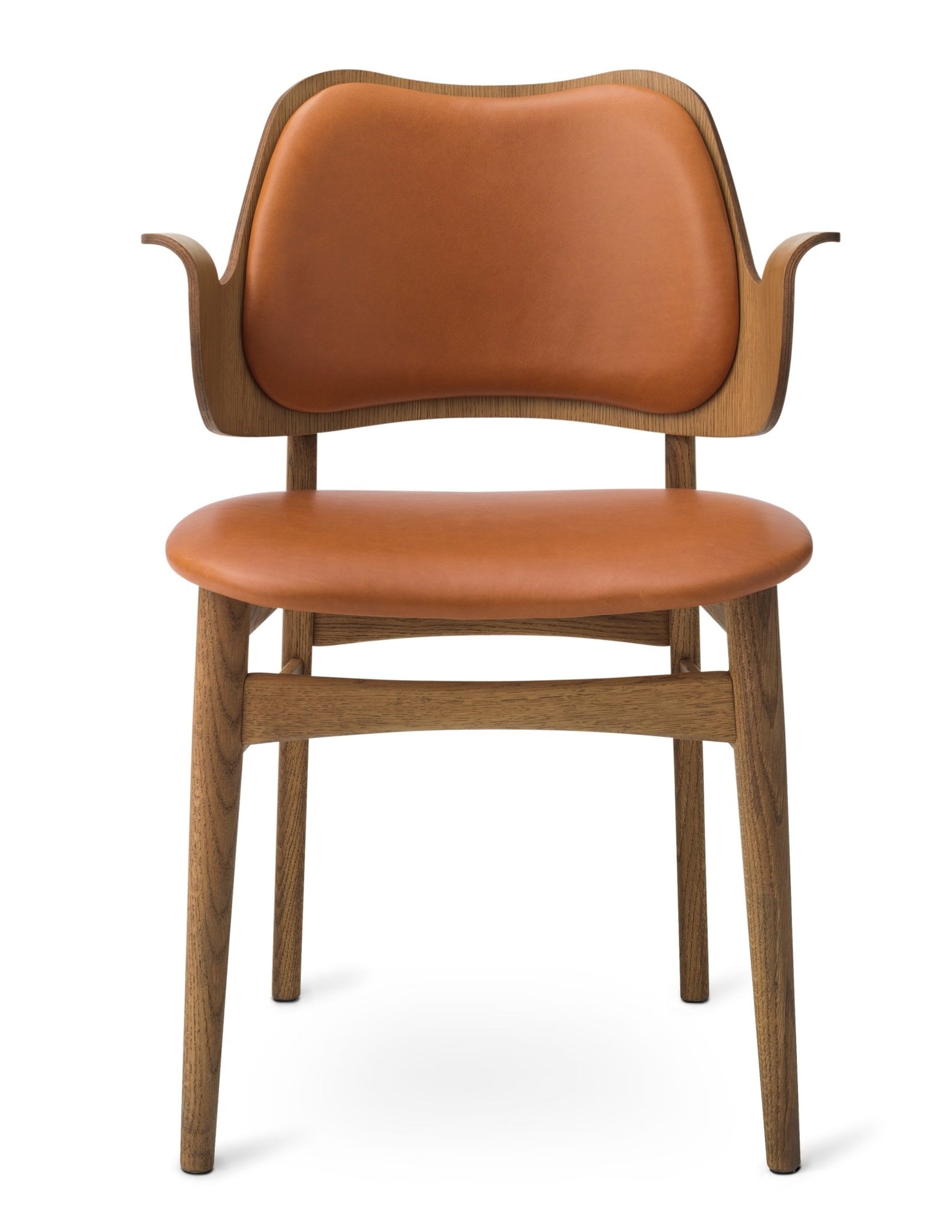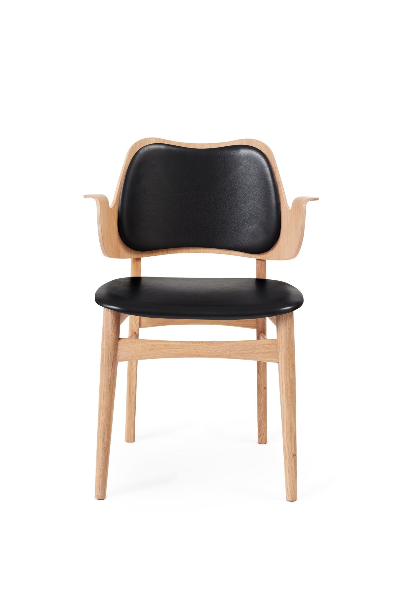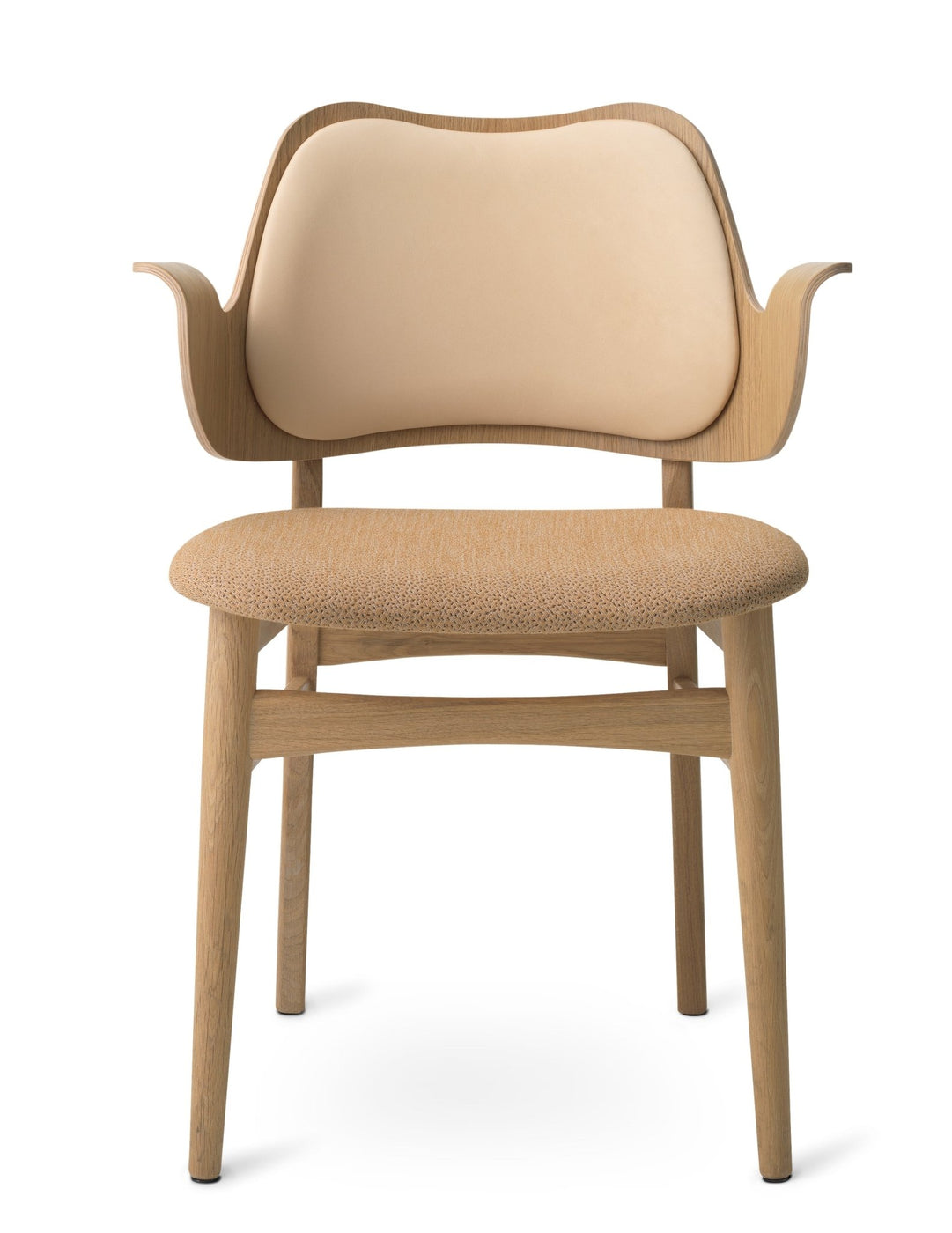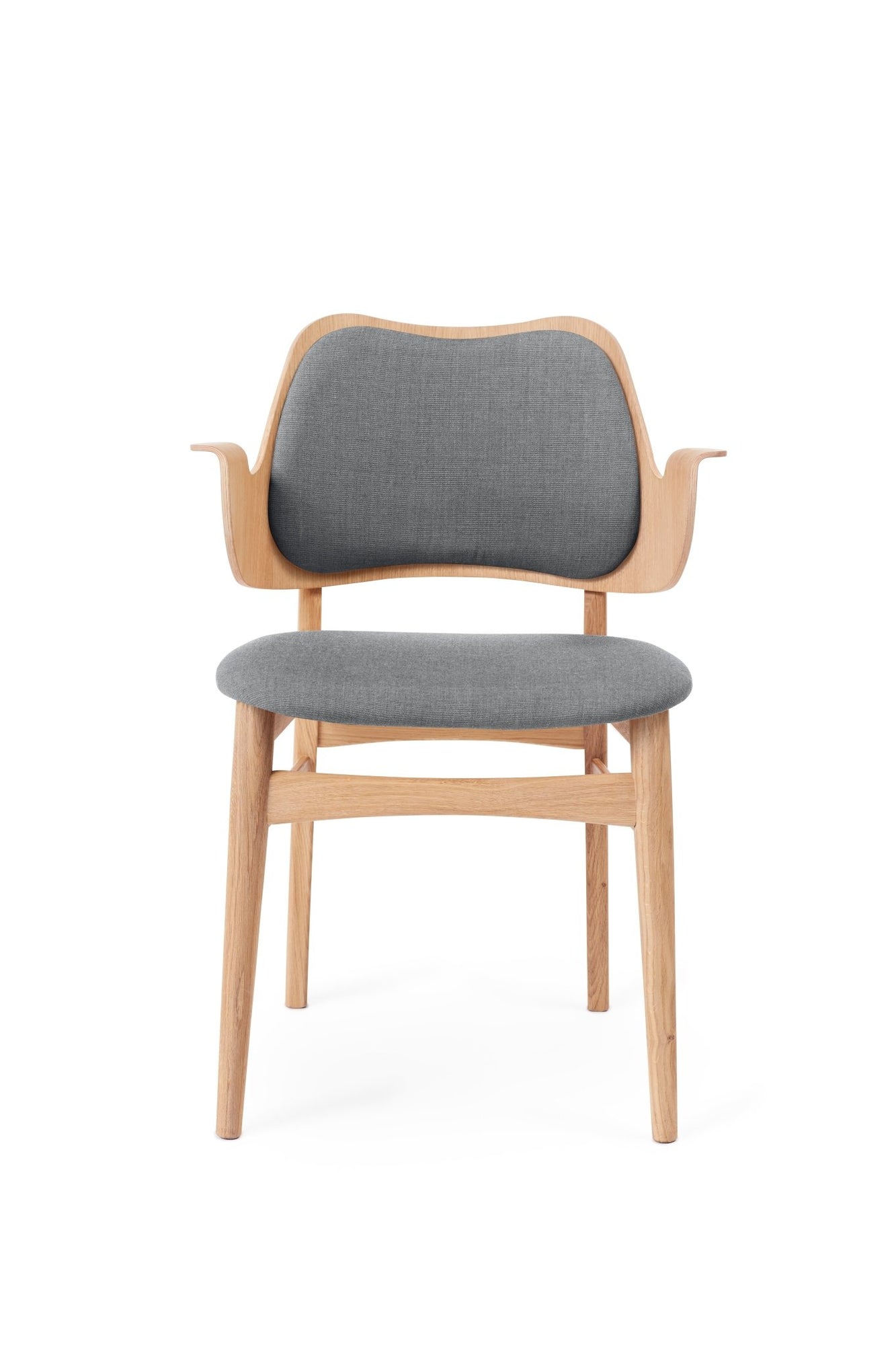 Originally designed in the 1950s by Hans Olsen, the Gesture Dining Chair captures the imagination and effortlessly creates a welcoming dining experience. Curved and shaped into a playful shrug, the back and armrest of the Gesture Dining Chair envelope the user, supporting them in a comfortable seat for hours of good food and conversation. The Gesture Dining Chair is crafted using oak and teak, introducing the organic woodgrain and warm finishes into contemporary dining rooms. Choose from upholstered or unupholstered variations of the Gesture Dining Chair and pair them each with the Rúna Dining Table or Be My Guest Dining Table for an elevated Mid-Century dining experience.