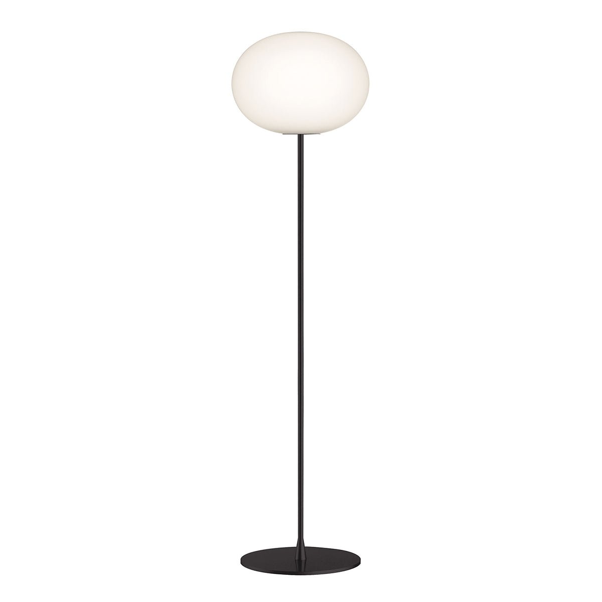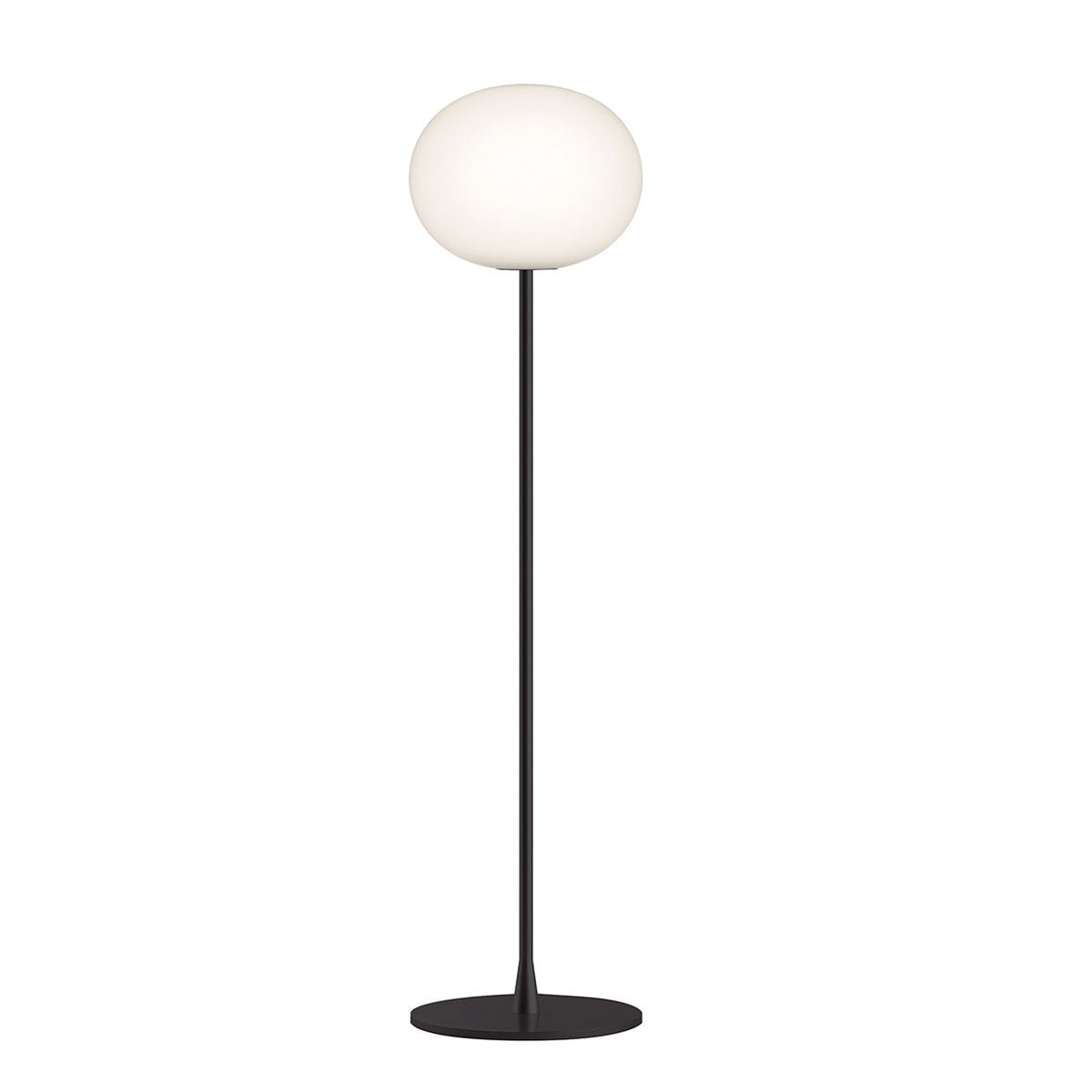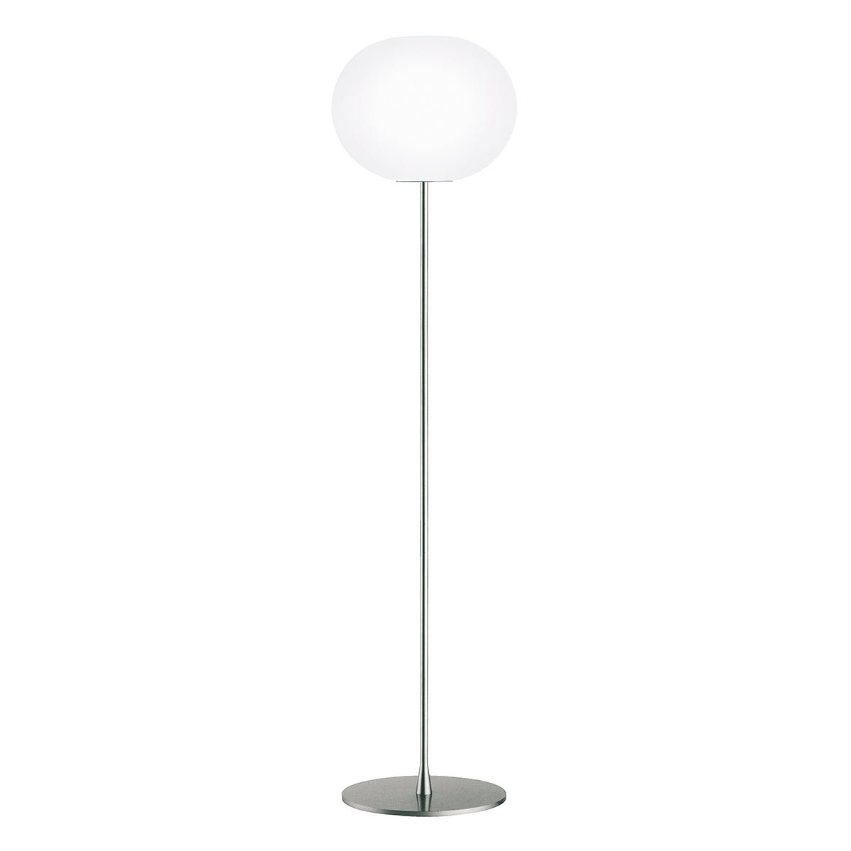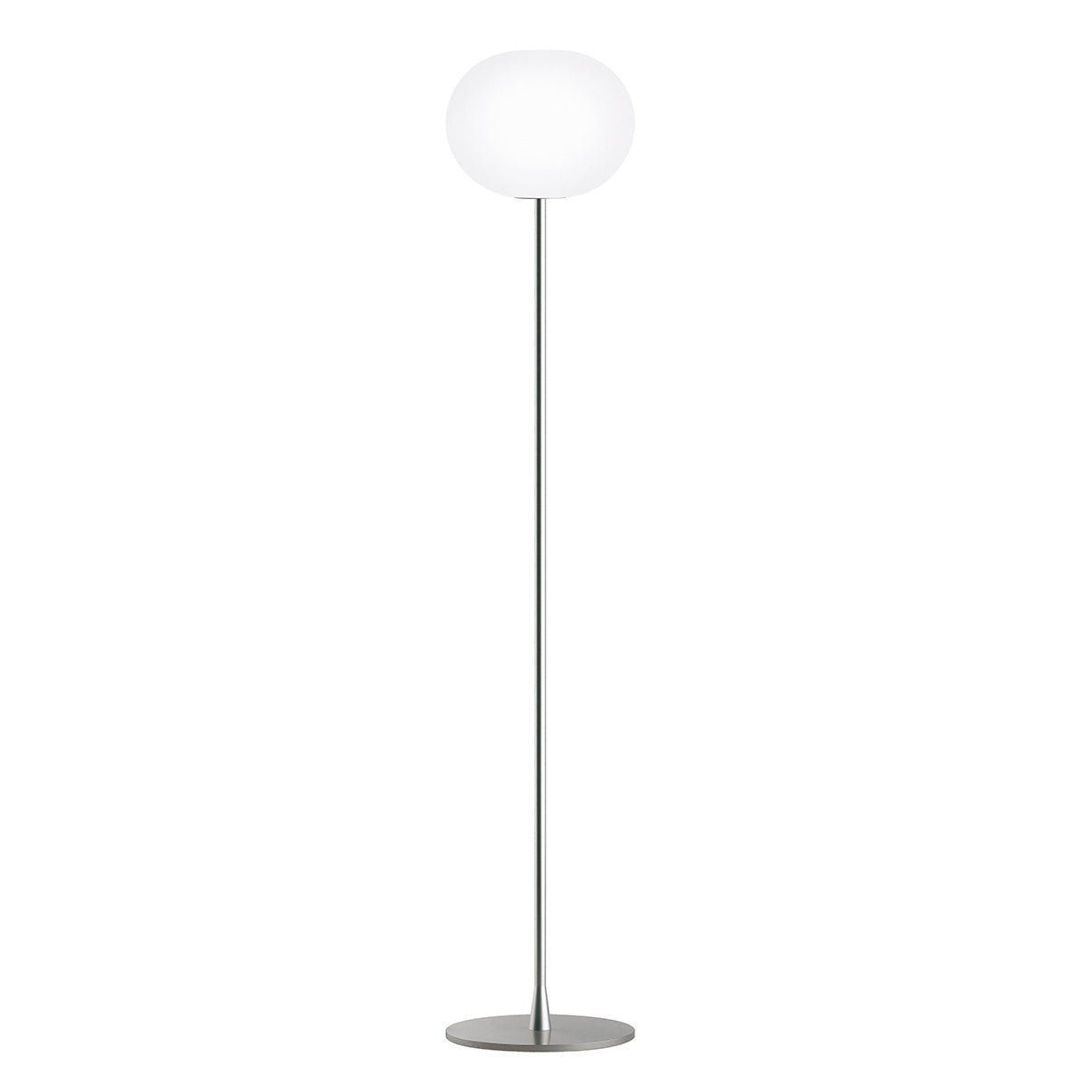 Made with high-quality glass and steel, the Flos Glo-Ball Dimmable Floor Lamp - Large/F3 offers both durability and style. The sleek, matte silver or black stem supports the elegant white opal-finish glass. Additionally, it’s an ideal lighting solution for residential or commercial spaces, providing a calming and subtle light. Its simple design also complements modern furniture and Scandinavian-style interiors.