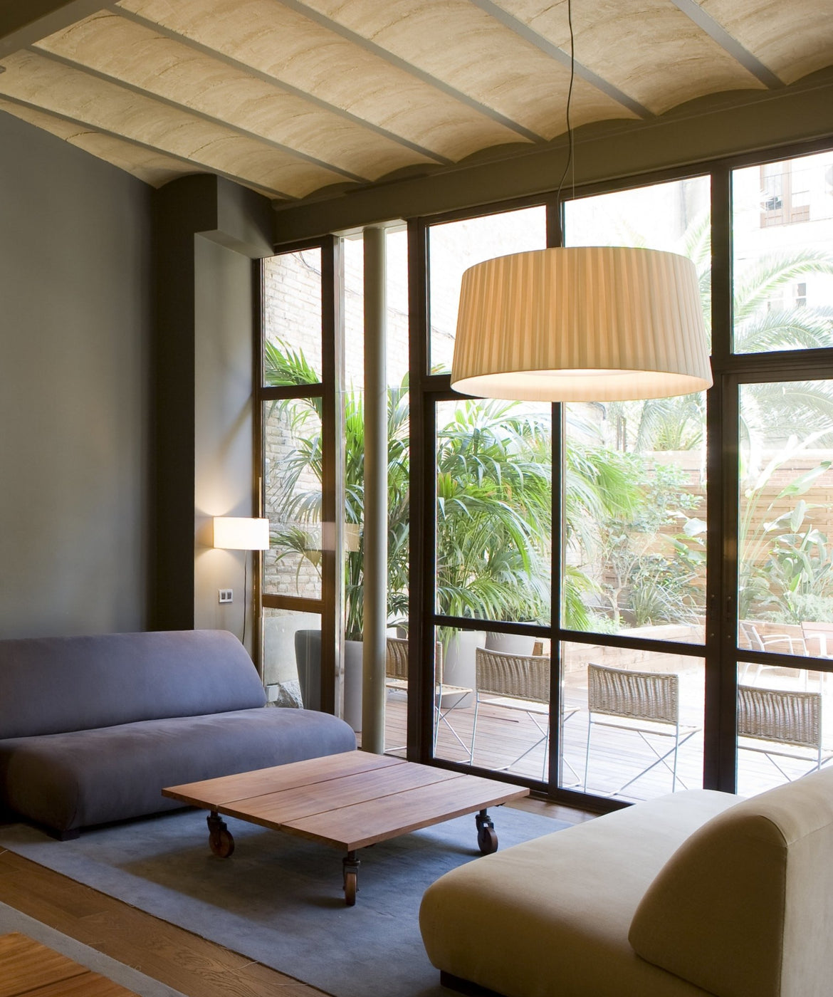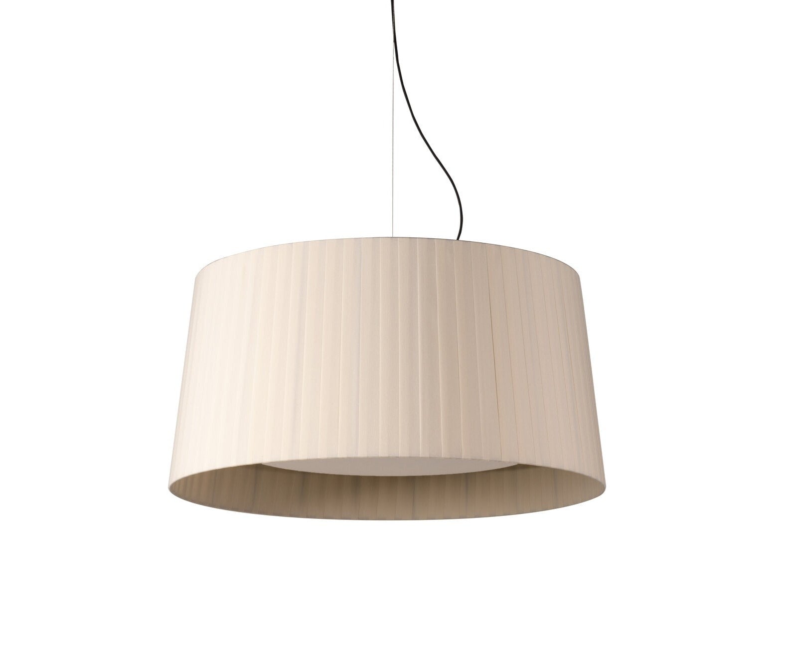 The GT7 Pendant by Santa & Cole effortlessly combines refined design with functionality. Its handmade cotton shade gracefully wraps around metal discs, ensuring even light distribution. In addition, the ribboned shade adds a nostalgic touch, evoking the iconic lampshades of the '80s and '90s, making it an ideal choice for diverse settings.