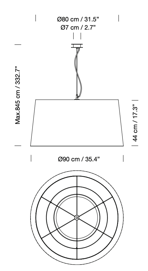 - Shade: 17.3"H x 35.4"Ø