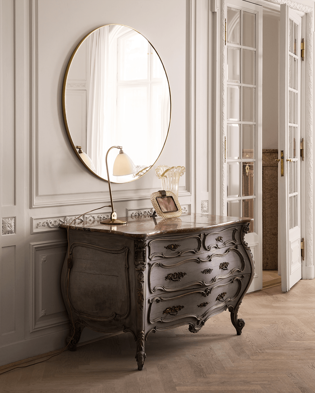 Despite its muted expression and minimalist features, the Gubi Round Mirror makes a huge statement with its size and versatility. Acting as the most functional piece of elegant décor, this elegant modern mirror embraces the simplicity of its foundational elements for a breathtaking piece to adorn any wall in the house.
