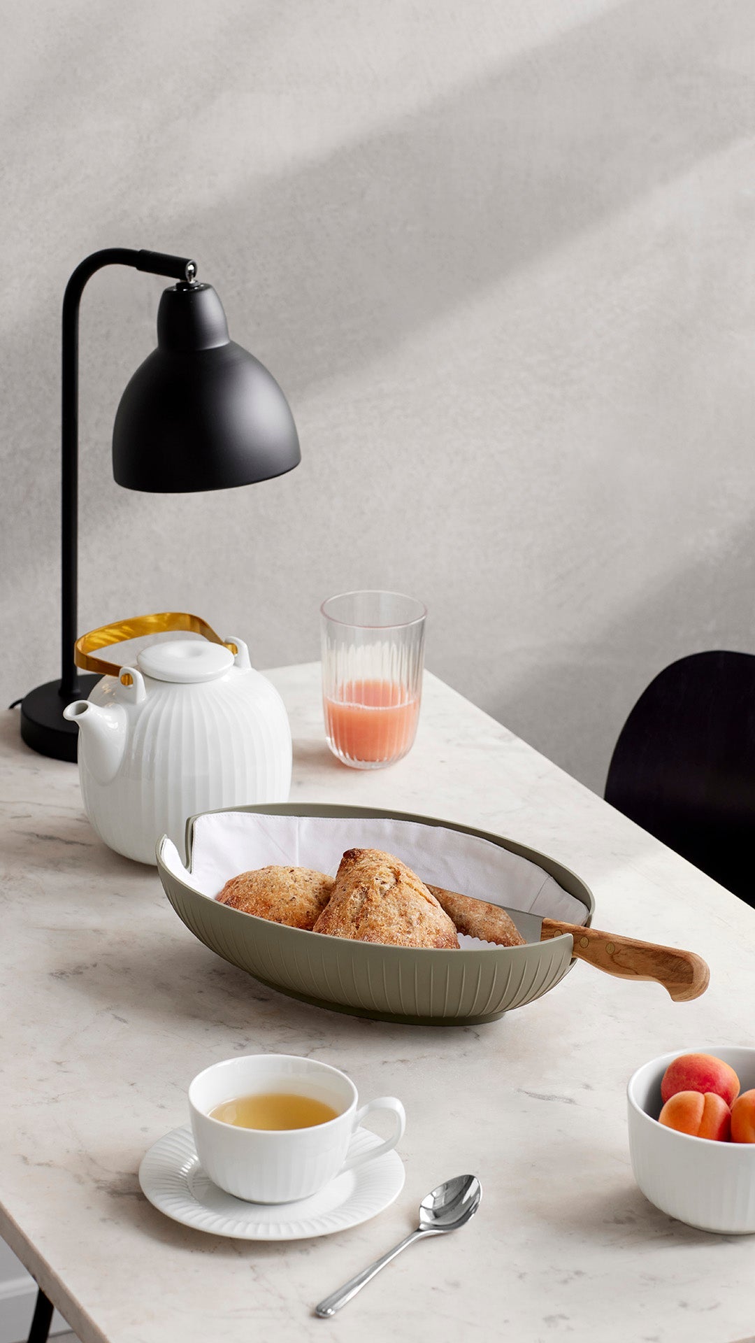 The Kähler Hammershøi Teapot is a stunning addition to your serveware collection, perfect for enjoying a well-brewed cup of tea. Crafted from high-quality white porcelain, this teapot features the signature Hammershøi furrows, which give it a sophisticated, timeless design. Moreover, its elegant brass-coated handle adds a touch of luxury, while ensuring a secure grip. With its practical built-in strainer, the teapot effortlessly separates tea leaves from the brewed tea, making it ideal for traditional tea brewing methods. Designed with both elegance and functionality in mind, the Kähler Hammershøi Teapot beautifully blends modern style with classic appeal. The built-in strainer is an added practical feature that enhances your tea brewing experience, allowing you to pour your tea smoothly and without any leaves. Furthermore, the fine porcelain and striking brass handle elevate this teapot, making it a luxurious and functional addition to any tea service. Whether for daily use or special occasions, this teapot will surely add an elegant touch to your tea time. Founded in 1839, Kähler is a renowned Danish ceramics brand known for its exceptional craftsmanship and innovative designs. The Hammershøi Teapot is a perfect example of the brand's dedication to combining traditional ceramic techniques with modern aesthetics. Kähler's pieces are celebrated for their timeless beauty and practicality, making them an excellent choice for those who appreciate high-quality serveware. In fact, the Hammershøi Teapot reflects the brand's legacy and commitment to creating pieces that are both functional and beautifully designed.