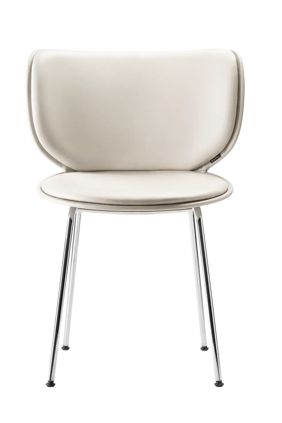 The Moooi Hana Chair Upholstered is Simone Bonanni's take on what happens when you design seating around the idea of a flower opening up rather than just making another dining chair. The petal-shaped backrest curves around you in this organic way that feels more like a gentle hug than rigid support, and the whole thing is named after the Japanese word for "blooming" which makes sense once you see how the form unfolds. Available in six different shell colors plus the option to fully upholster in a massive range of fabrics, so you can go subtle and blend it into your space or make it a statement piece depending on your mood. The base comes in either chrome or matte black, and there's both a regular version and a stackable one if you need chairs that tuck away for extra space. What's smart is how Bonanni balanced the sculptural look with actual comfort - the generous proportions and flexible backrest mean you're not shifting around after twenty minutes at the dinner table.