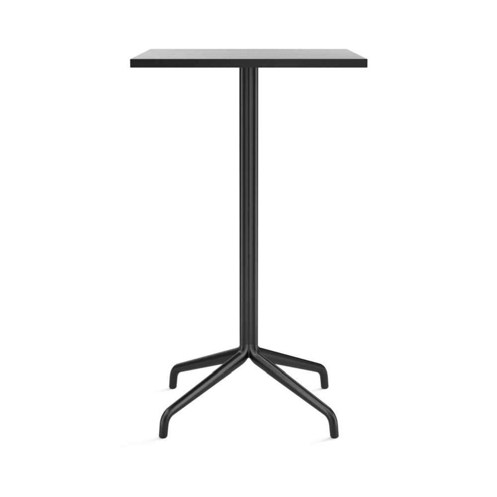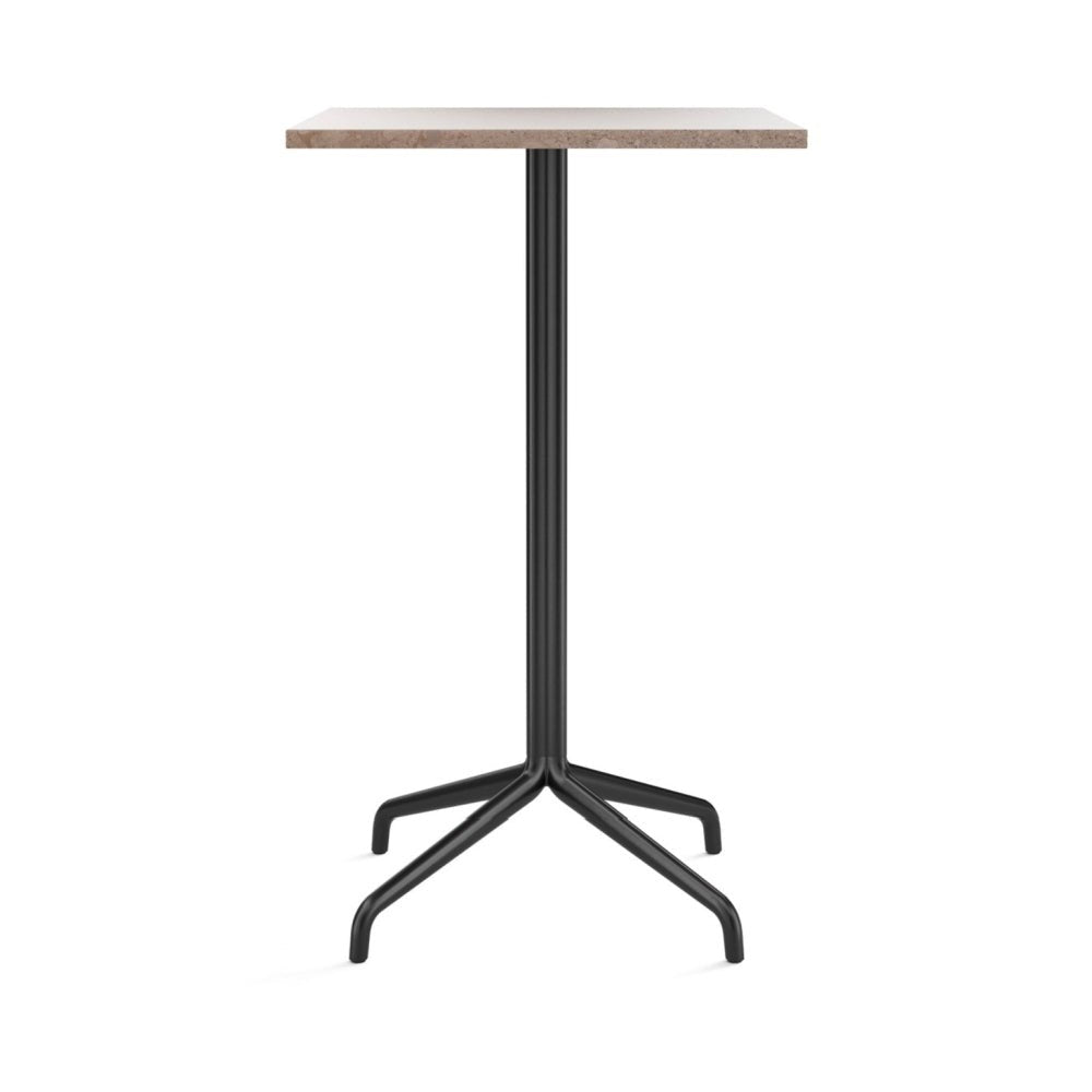 The Harbour Column Bar Table - 24" x 28" with Feet by Audo Copenhagen offers a refined balance of form and function. Designed for compact spaces, its sleek rectangular tabletop pairs beautifully with a sculptural clover-shaped base. Whether placed in a stylish café, home bar, or office, this table enhances the setting with its sophisticated presence. Additionally, its minimalist design allows it to blend seamlessly with various interior styles.