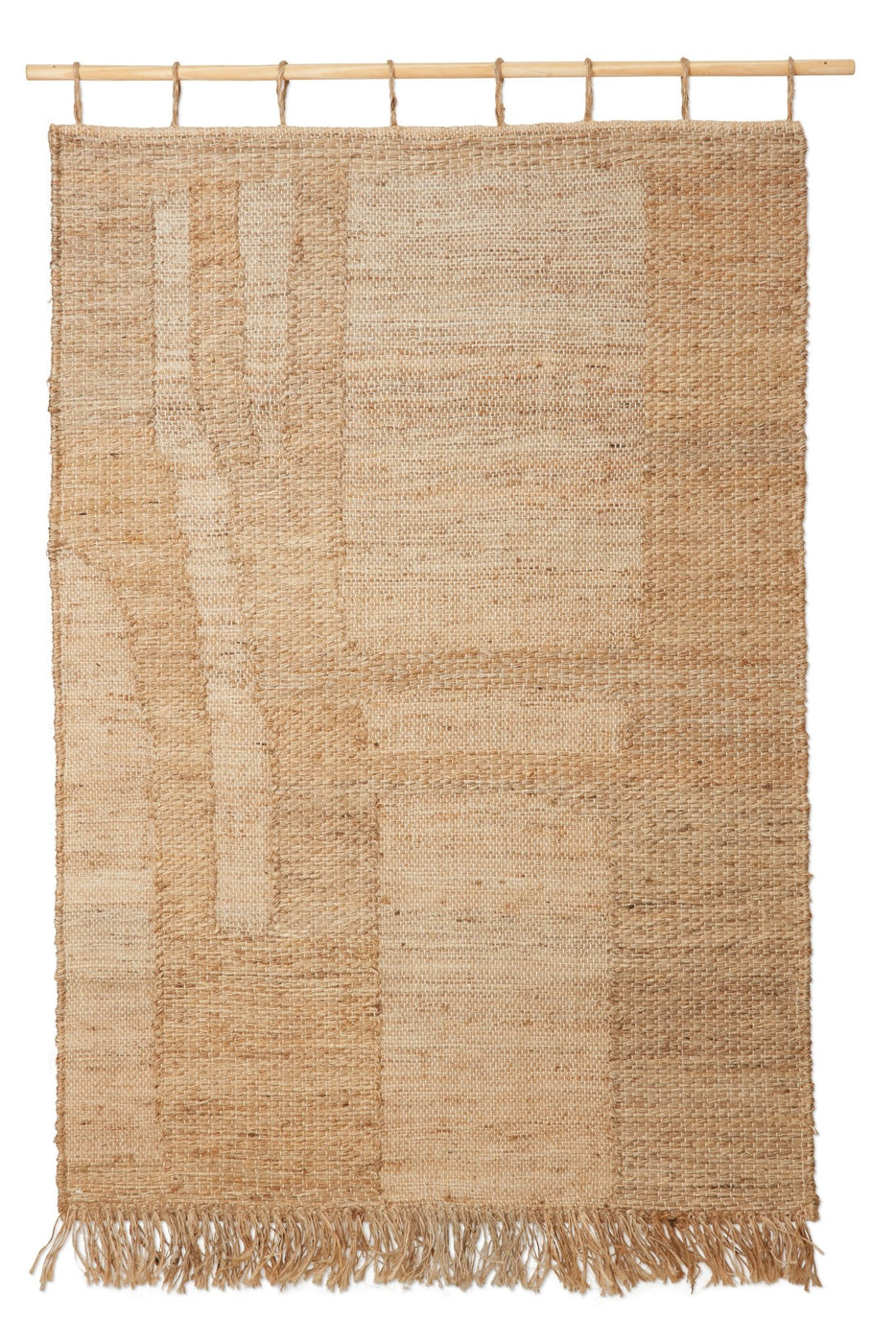 Bring natural warmth and quiet sophistication into your space with the Harvest Wall Rug by Ferm Living. Made from 100% jute, this tactile wall hanging includes a wooden bar for easy display. Its handwoven texture and playful fringes create a soft, rustic charm. Whether styled above a lounge chair or next to a modern sofa, the Harvest Wall Rug adds depth and balance to any Scandinavian design-inspired room.