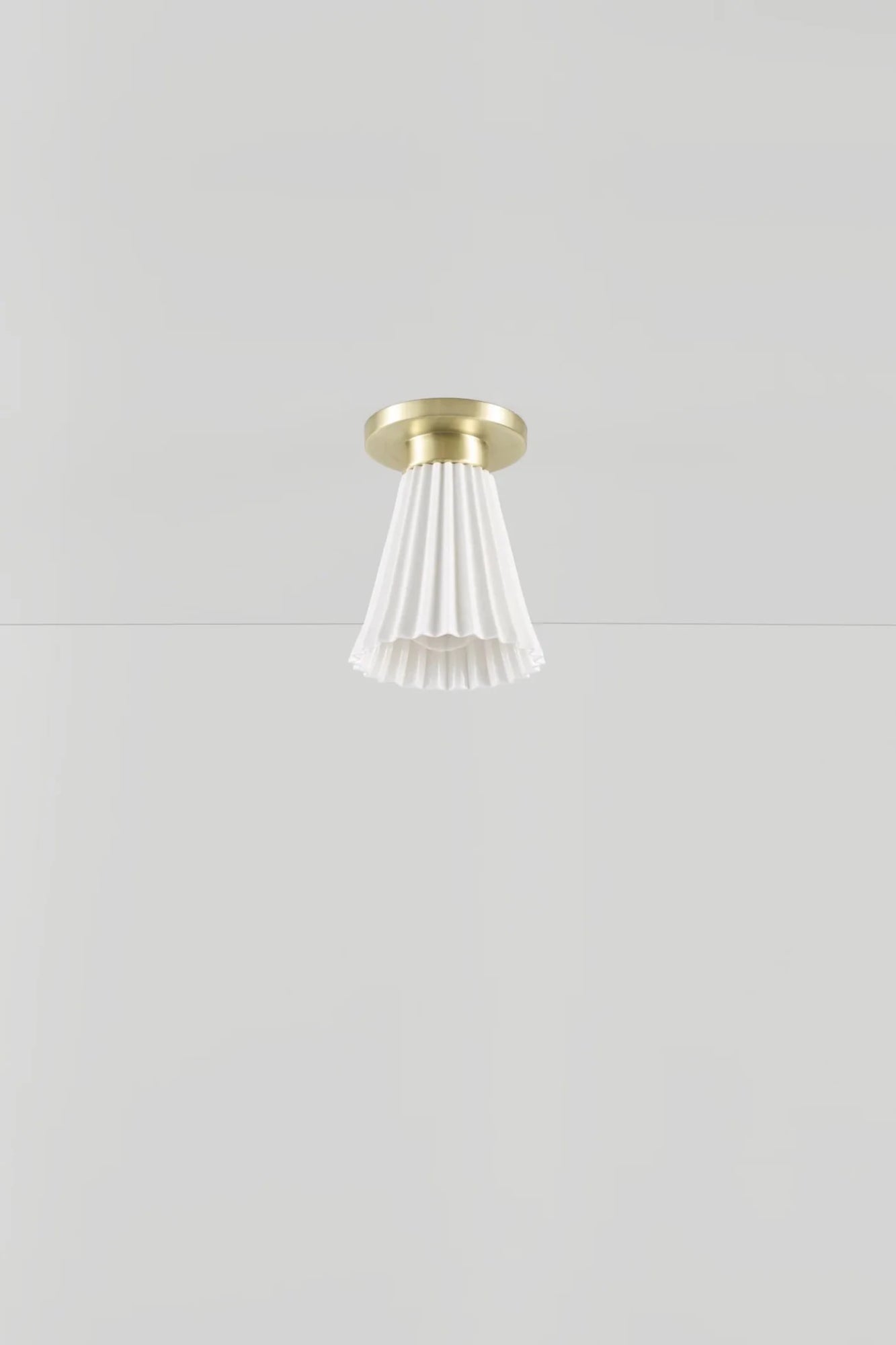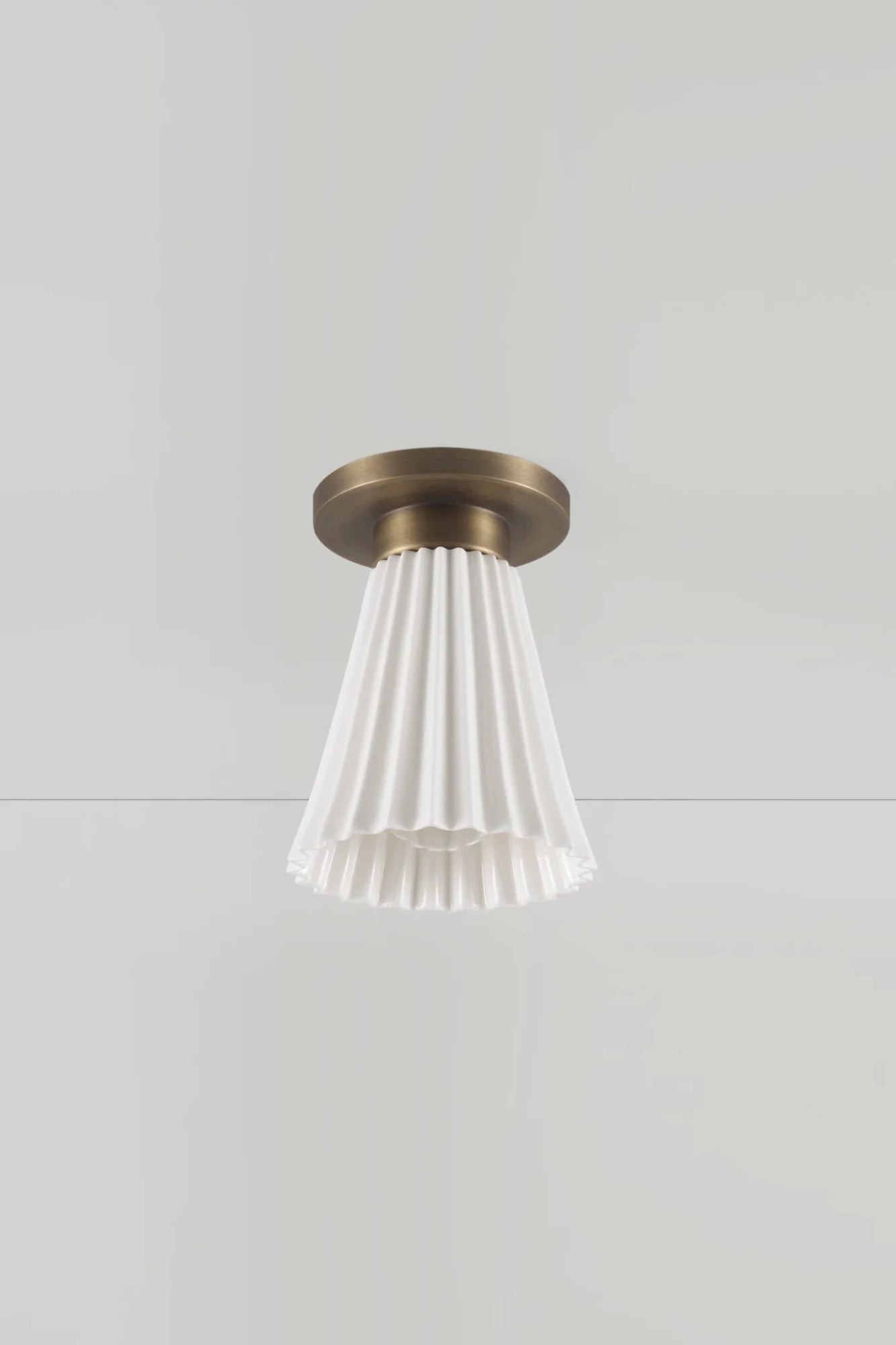 The construction quality becomes evident through daily use, with the premium materials maintaining their beautiful appearance through regular switching, environmental changes, and the natural interaction that comes with overhead lighting systems. The carefully considered proportions work beautifully in different room configurations - the medium size provides effective ambient lighting while the pleated design creates visual texture that enhances architectural elements and spatial definition. The substantial construction ensures long-term reliability while the refined details reflect authentic British design innovation. The ceiling light encourages atmospheric lighting rather than utilitarian illumination, offering reliable functionality for everything from intimate dinners to casual entertaining while maintaining its sculptural beauty through constant use and seasonal room arrangements.