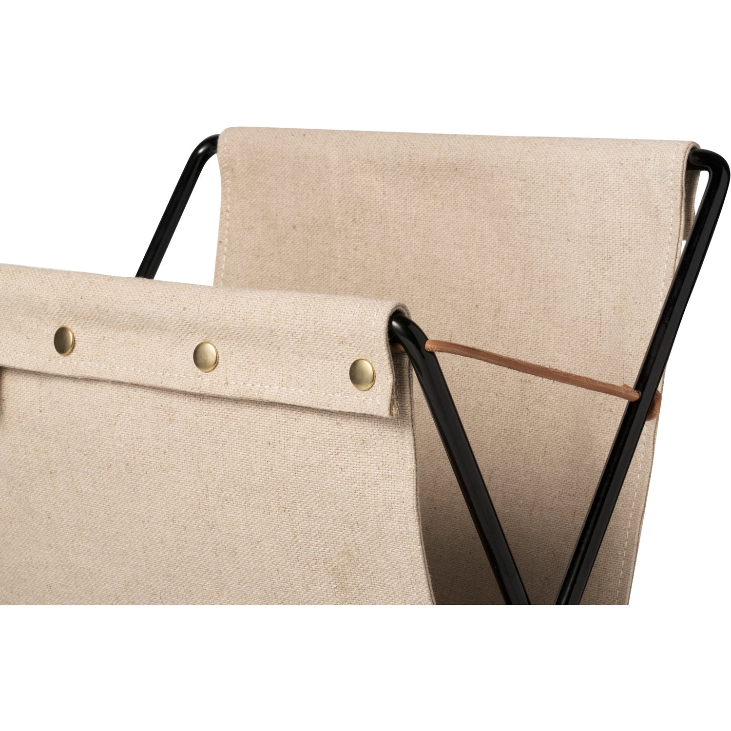 Material: Canvas Cotton, Powder Coated Metal, Brass Detail, Leather string