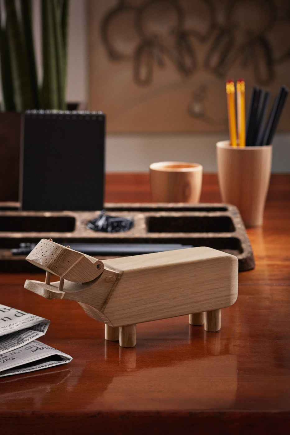 The Kay Bojesen Hippo was first introduced in 1952 and is now available. Made from natural oak and maple, this Hippo fits seamlessly with Bojesen’s other wooden figures. The Kay Bojesen Hippo is a timeless design icon, perfect for both children and adults. Its robust and simple design ensures it will never go out of style, making it a cherished gift or family heirloom. This Hippo isn’t just a decorative piece; it’s a companion that grows with you. As one of the original figures in Bojesen’s wooden animal collection, the Hippo design blends functionality with playful charm. Crafted with the same attention to detail that defines all of Bojesen’s creations, it is the ideal gift for special occasions. Its timeless appeal makes it a piece that can be passed down through generations. About Kay Bojesen Kay Bojesen, the Danish designer behind this iconic collection, revolutionized wooden animal design with his distinctive approach to form and function. His figures, including the Kay Bojesen Hippo, are celebrated for their craftsmanship and enduring appeal. Loved by children and adults alike, Bojesen’s wooden animals foster creativity and an appreciation for design. Today, his work remains a staple in Scandinavian design, and his legacy lives on in every piece, including this beloved Hippo.