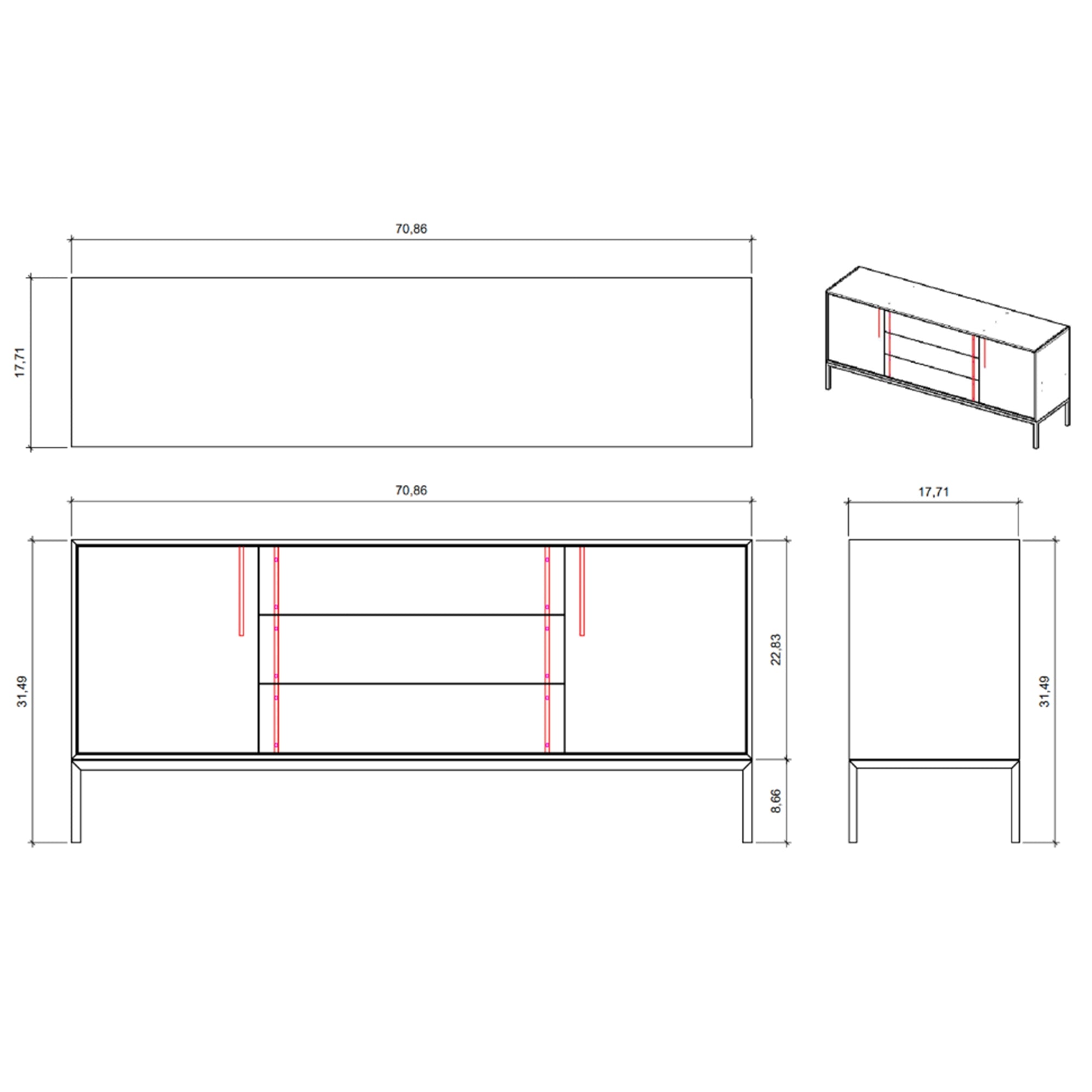 Dimensions: W: 71 in × D: 17.75 in × H: 31.5 in