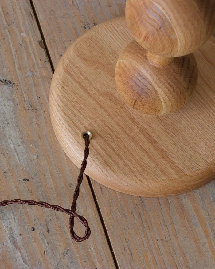 Material: Wood Base, Linen Shade