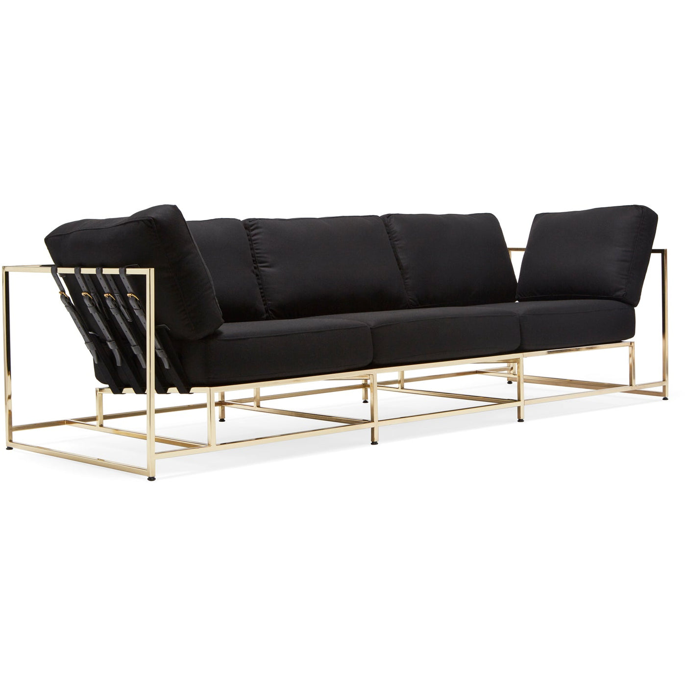 Designed for both comfort and strength, the Inheritance Sofa - Black Wool & Brass offers plush foam-wrapped cushions alongside soft down-filled side cushions. Additionally, the brass frame supports the sofa sturdily while adding an elegant touch. This modern sofa works well with media consoles, credenzas, and modern lighting. As a result, it creates a welcoming, stylish space that fits both contemporary and classic interiors.