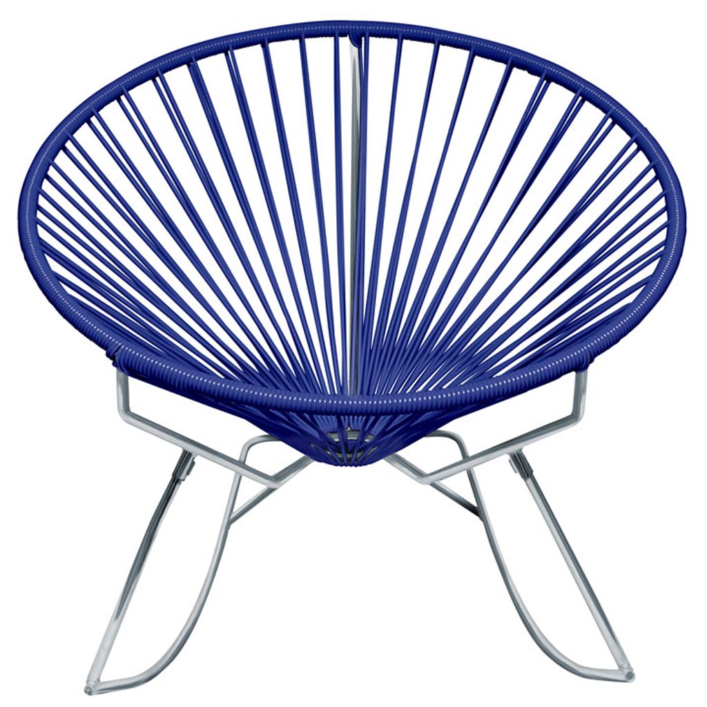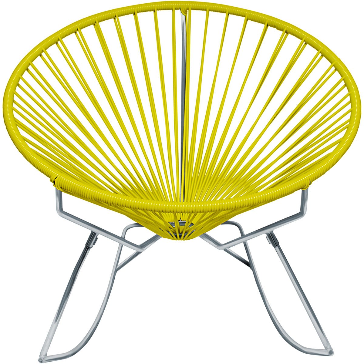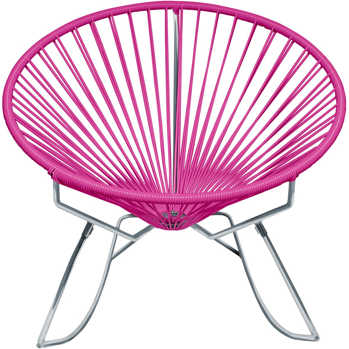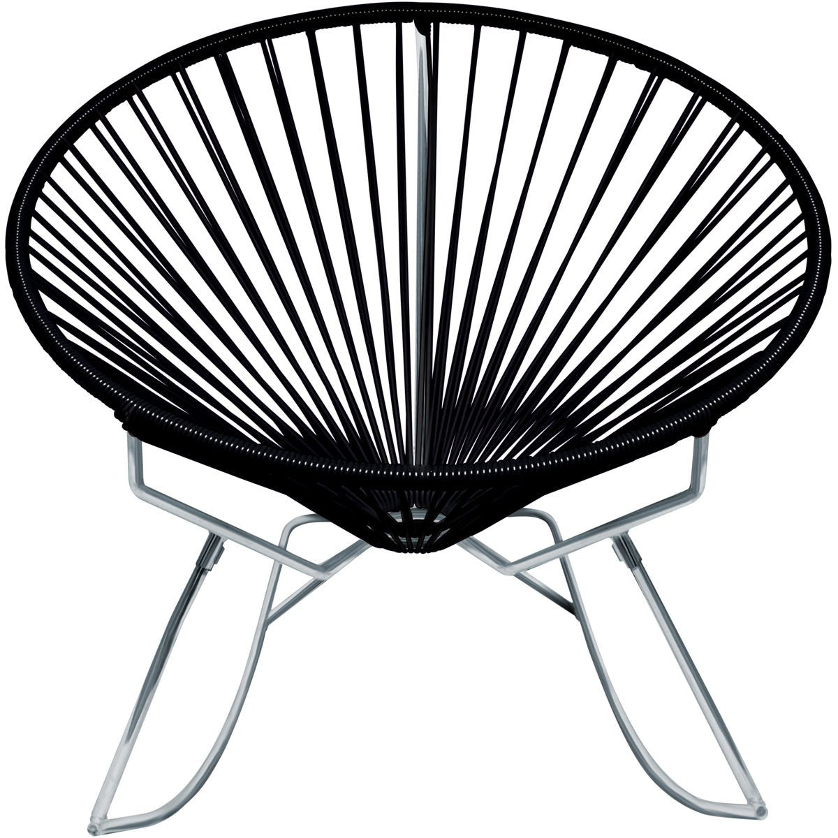 The Innit Designs Rocking Chair Chrome Base offers a modern and stylish twist on traditional rocking chairs. Unlike the typical pear or avocado-shaped Acapulco chairs, this chair features a completely circular frame, which makes it stand out as a unique piece. Additionally, the galvanized steel powder-coated base ensures durability, while the sleek chrome finish adds a touch of elegance to any room. Perfect for indoor use, this chair is available in a range of colors, allowing you to easily find the ideal match for your home decor.