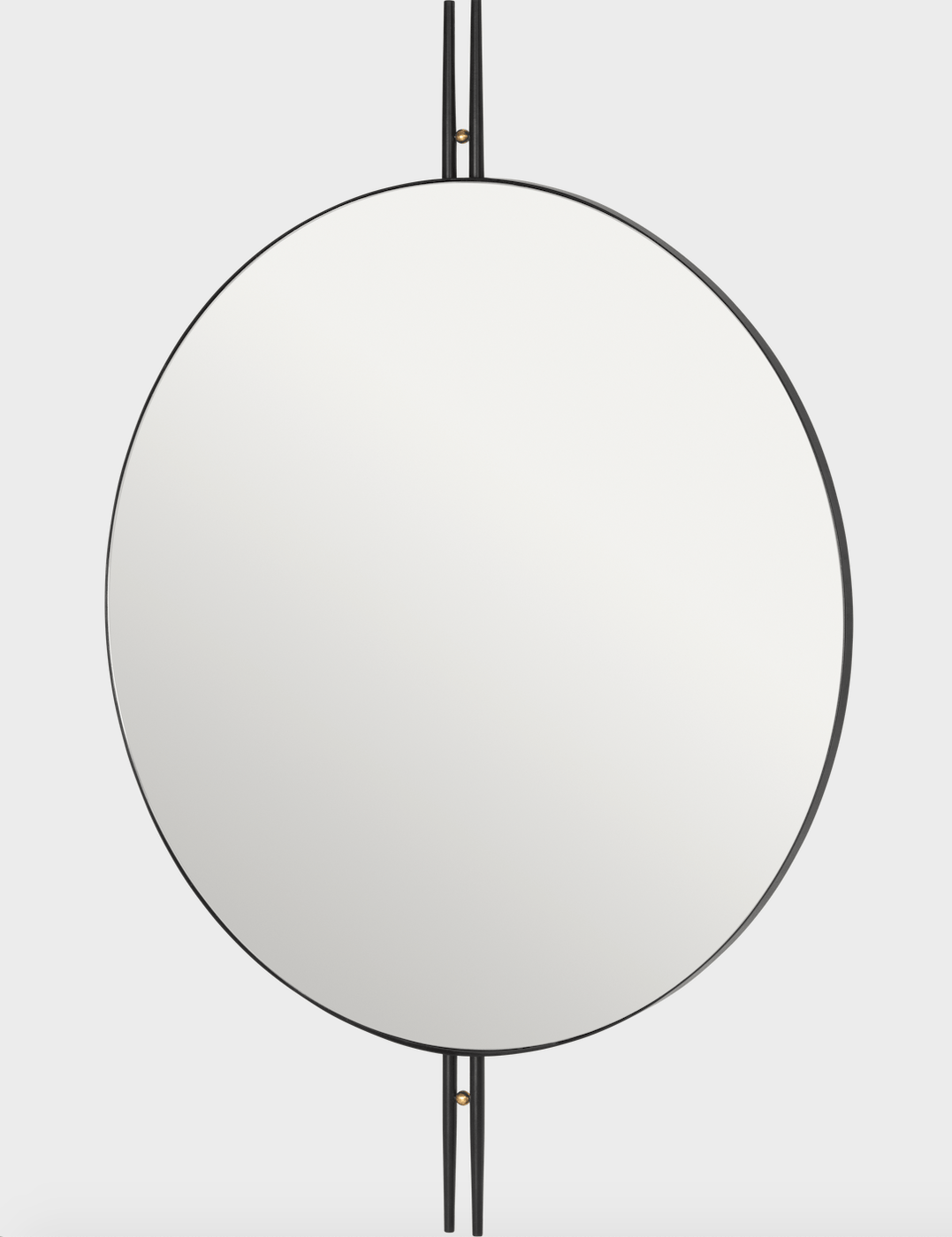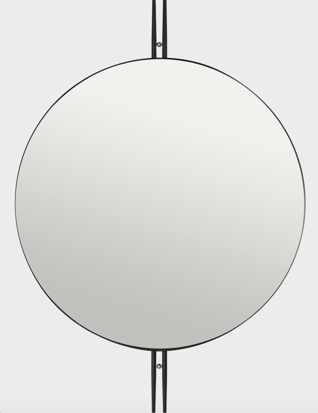 A little bit avant-garde, but stylistically disciplined, this Gubi mirror embraces subtle retro aesthetics. The IOI Wall Mirror pulls the leg design from the coffee table and mounts a smooth, round glass mirror in the center for breathlessly beautiful symmetry. Brass detailing is the cherry on top of this delicately balanced design, making it the envy of any space it enters. This graceful wall mirror introduces subtle movement, light, and clean lines into contemporary living rooms, hallways, bathrooms, and more.