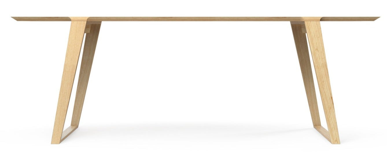 Melding machine driven, digital design with the material beauty of wood, the table’s form is stripped down to its bare essentials. Strong, spare lines have been considered with exacting rigor. Table top edges are mitered. Joinery details create a continuous line from the top surface through the legs, highlighting the simplicity of the design. Made from the finest quality American hardwoods and hand-finished with a natural oil-wax finish. These materials were thoughtfully selected to offer a piece with no toxins and no off-gassing, for the environment, the craftspeople and you.