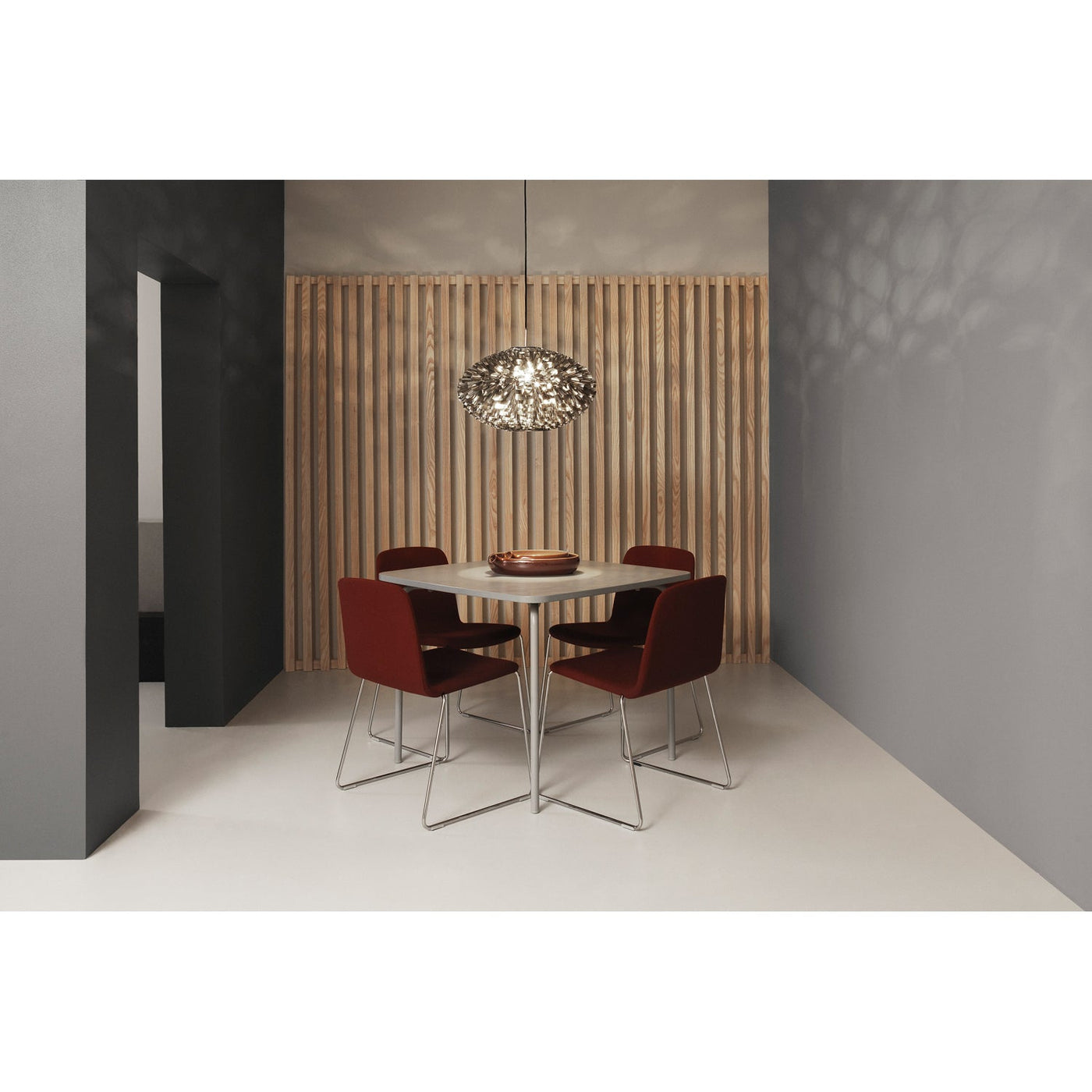 The Just Chair - Upholstered - Set of 2 by Normann Copenhagen combines clean lines with exceptional comfort. Designed by Iskos-Berlin, this chair features a curved shell and a seamless steel frame for a sleek, modern look. The durable fabric or leather upholstery enhances both aesthetics and longevity. Whether used in a dining room chandelier setting or as part of your living room furniture.