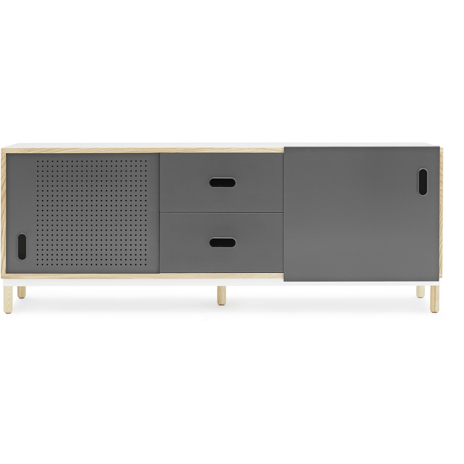 The Kabino Sideboard with Drawers by Normann Copenhagen is a stylish and functional storage piece. Designed by Simon Legald, it balances industrial aesthetics with Scandinavian warmth. Its matte-lacquered aluminum doors and drawers contrast beautifully with the natural ash frame, creating a sleek yet inviting look. Measuring 24 inches in height and 63.7 inches in length, it provides ample storage without feeling bulky. Whether placed in the living room furniture, dining area, or hallway, it seamlessly enhances any modern space.