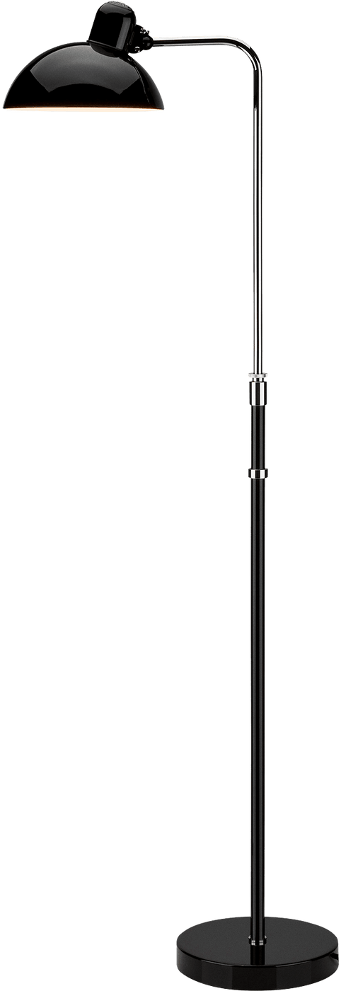What makes this floor lamp extraordinary is Dell's ingenious patented swivel bearing connection system - a technical innovation exclusive to the idell series that remains a hallmark of authenticity today. The upper ball joint allows smooth shade adjustment, while the hand-painted steel shade features internal coating optimized for advanced light control, ensuring glare-free illumination. The 53-inch black silicone cord includes an integrated foot switch for convenient operation, while the substantial round base provides stability without sacrificing elegant proportions. Available in multiple finishes including classic matte black, the KAISER idell adapts to any interior while maintaining its commanding presence as a design statement.