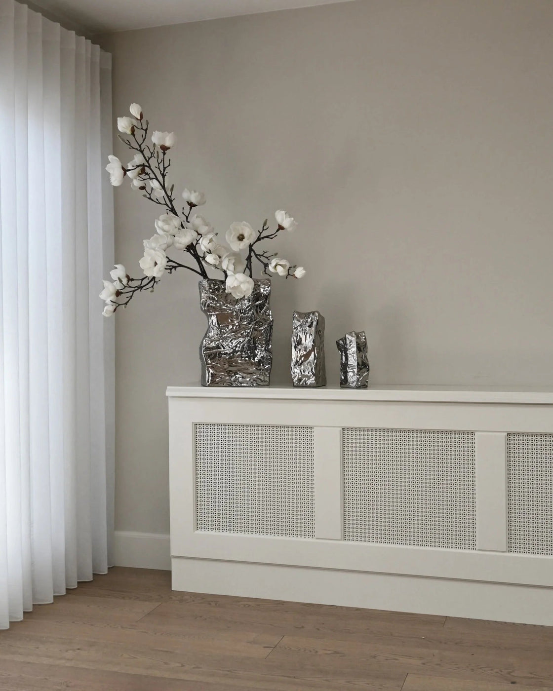 The 101 Copenhagen Kami Vase brings minimalist sophistication to any space, delivering sculptural elegance that works perfectly whether holding statement florals, architectural branches, or standing alone as striking contemporary art. The sleek chrome finish creates beautiful reflections that change throughout the day, adding dynamic visual interest to dining tables, console surfaces, or shelving displays while providing the perfect vessel for both dramatic arrangements and simple single stems. What's particularly appealing about the Kami is how its clean, geometric form manages to feel both boldly modern and timelessly elegant, creating substantial presence without competing with your existing decor or overwhelming intimate spaces.