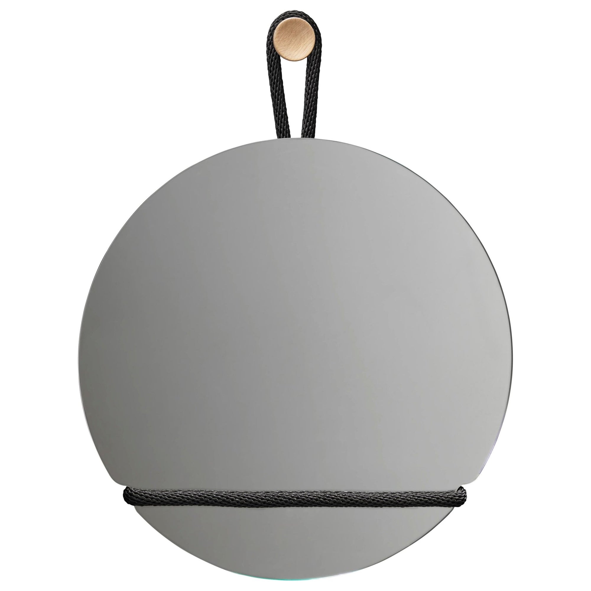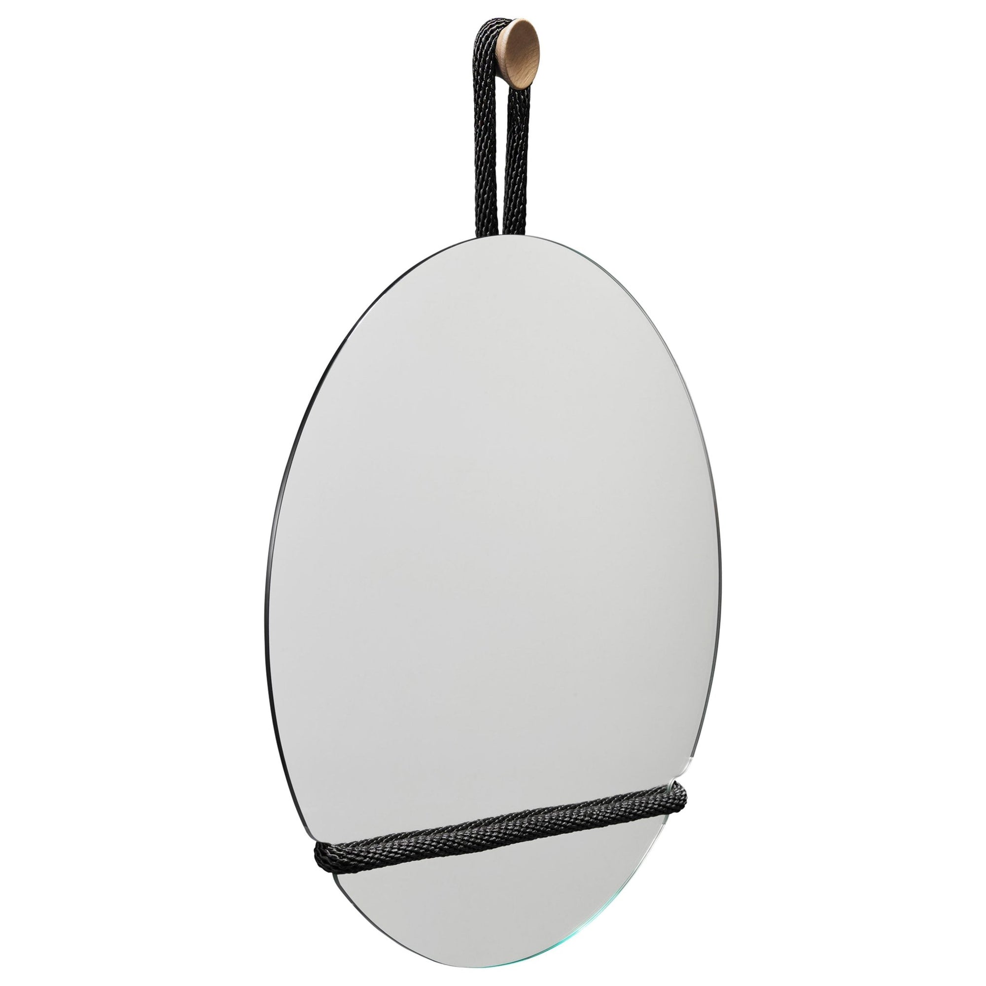 Material: Mirror Glass, Galvanized Iron, Nylon Rope, Oak Knob