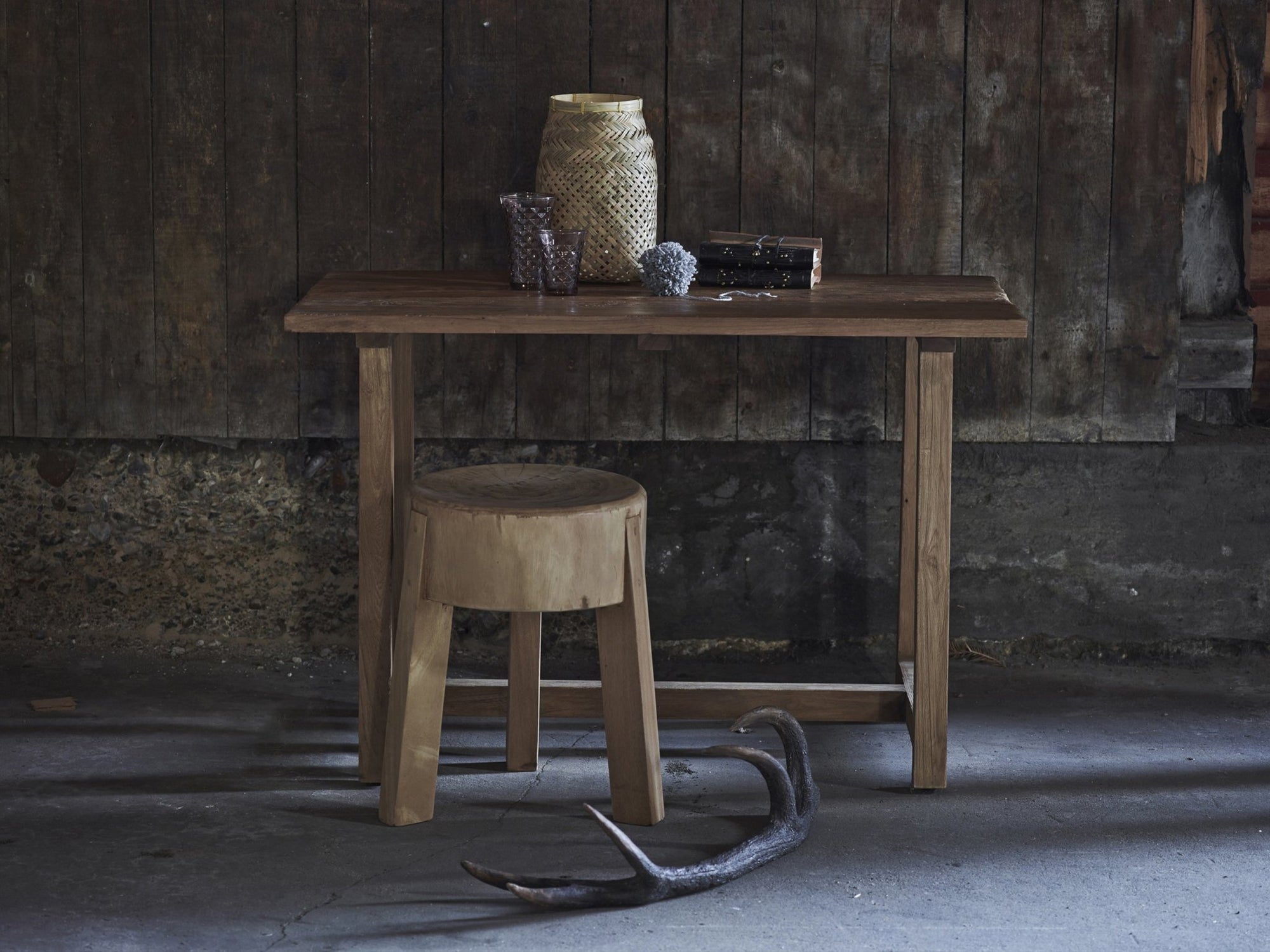 The Lucas Desk by Sika Design adds elegance to any room. Made from reclaimed teak wood, it features natural wear and history that highlight the craftsmanship behind each piece. Its angled legs and smooth top provide a stylish and practical workspace. This desk seamlessly fits into both modern offices and classic interiors, complementing your living room furniture and adding character to any room.