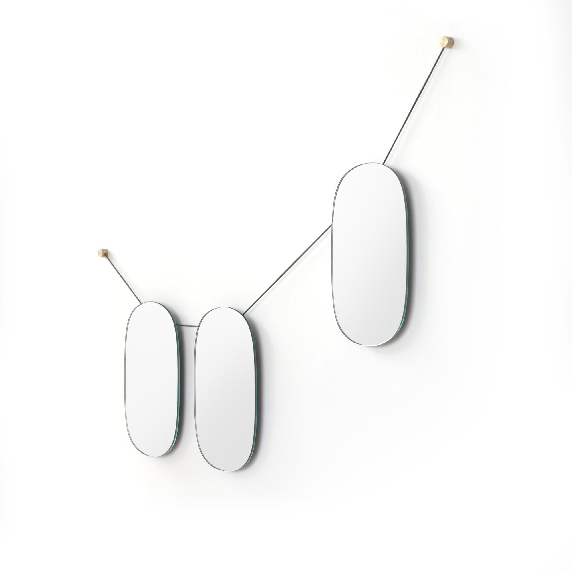 The charming oval shape of the Lure Mirror adds a smidge of character to any spare wall space. Let the Lure Mirror hang alone, or use the Lure Mirror Triple to add an extra artistic element to living rooms, bedrooms, bathrooms, and hallways.