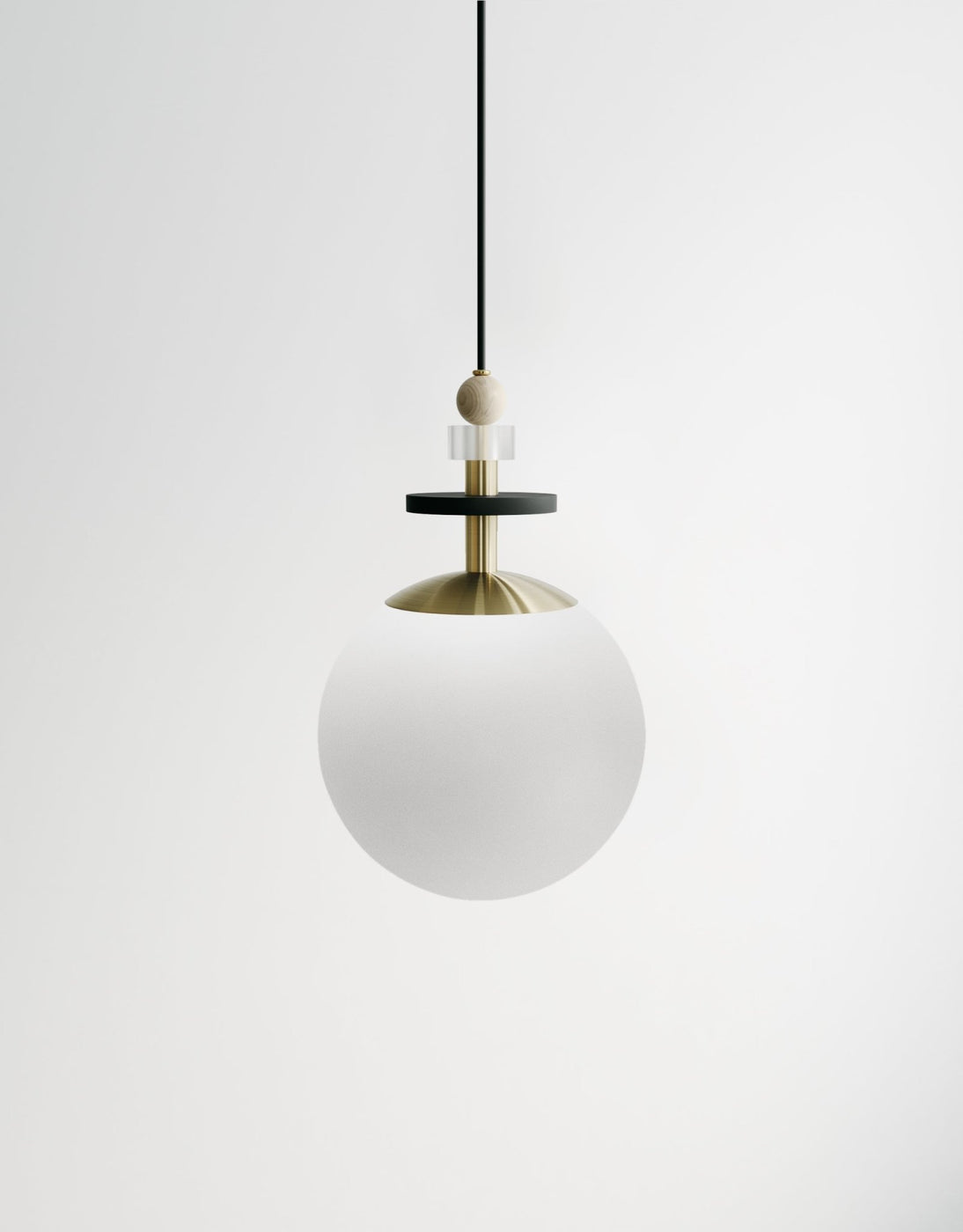 The L&G Maru Small Stack treats lighting like jewelry - stacking decorative beads in brass, maple, and clear acrylic above a 6-inch glass globe to create these sculptural compositions that work as much for their looks as their light output. The "small stack" configuration runs about 12 inches tall total, making it work well over kitchen counters, bedside tables, or clustered above dining areas where you want visual interest without massive pendants dominating the space. The stacked beads sit on an 8-foot dark grey fabric cord that's adjustable on-site, and the whole thing hangs from a 5-inch round black powder-coated canopy. At 5 pounds per pendant, these are light enough to install multiples without structural concerns.