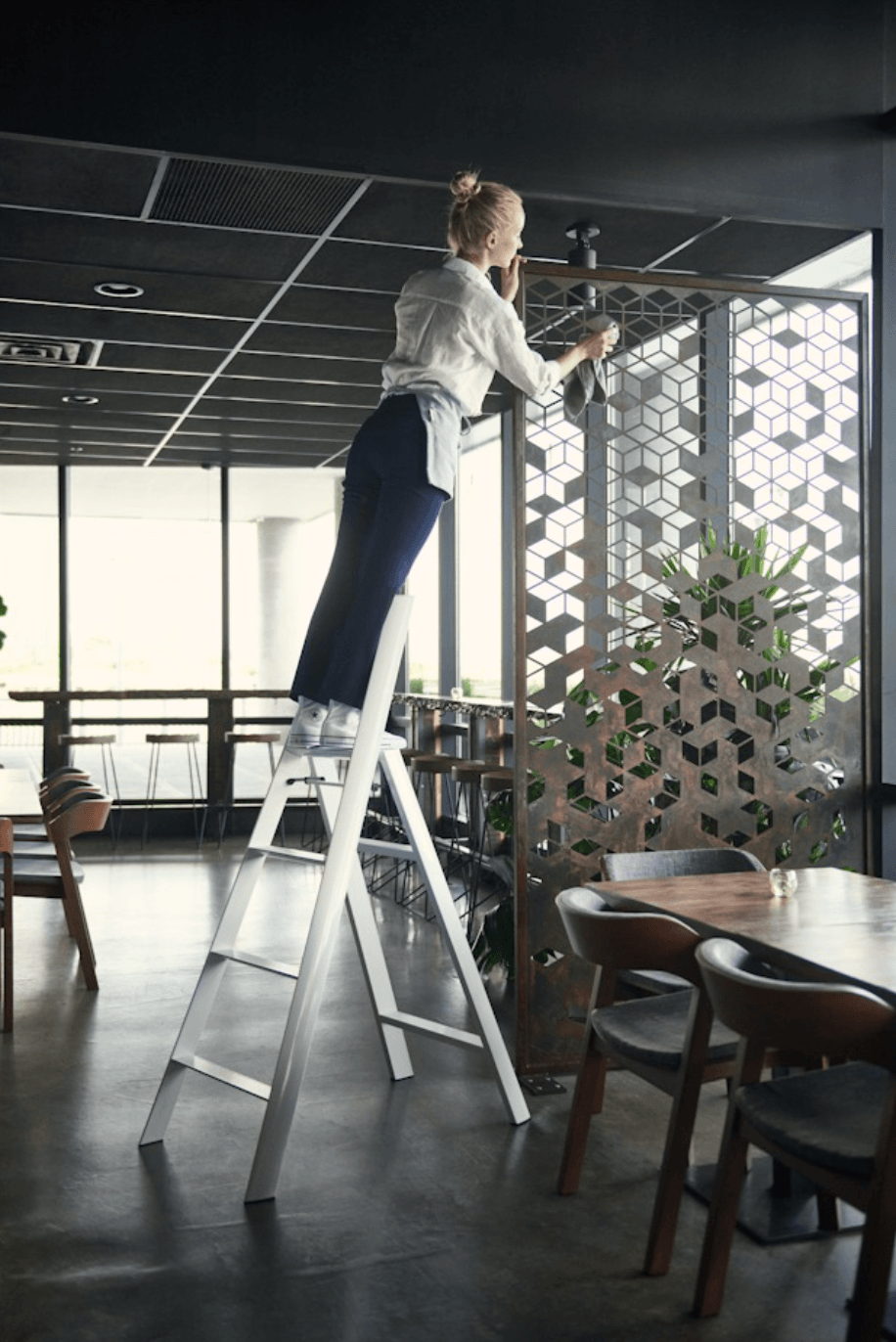 Constructed from durable aluminum, the Metaphys Lucano Stepstool 4-Step combines longevity with sleek design. It boasts smooth, rounded edges and hidden fasteners, giving it a clean and modern look. Moreover, the step stool offers a vertical reach of up to 10'2" for individuals 5'7" tall, making it both practical and visually appealing. With added safety features like a latch and bar for extra security, the Metaphys Lucano Stepstool 4-Step provides peace of mind. As a result, its sturdy construction ensures long-lasting use, making it a great choice for any home or office.