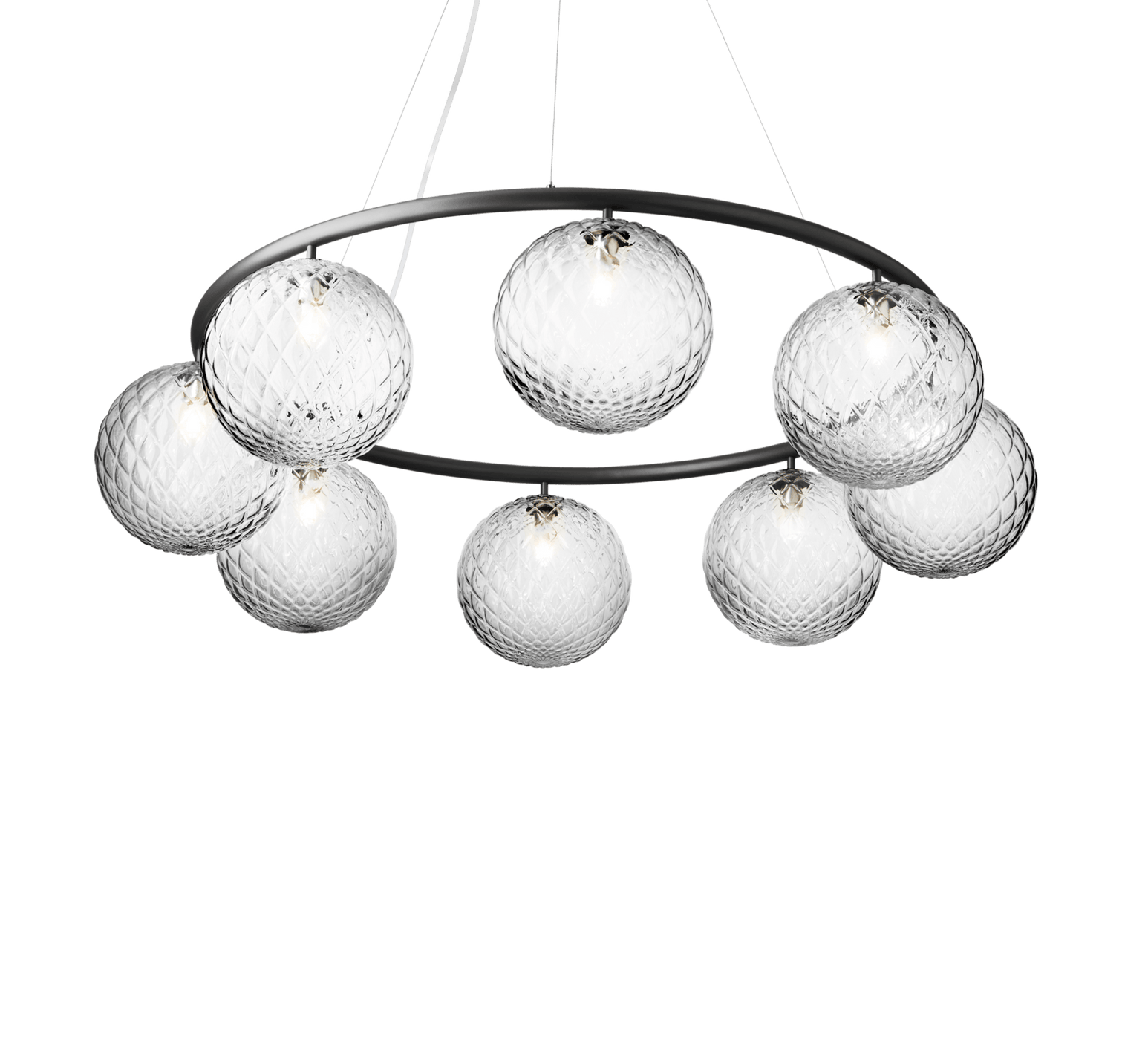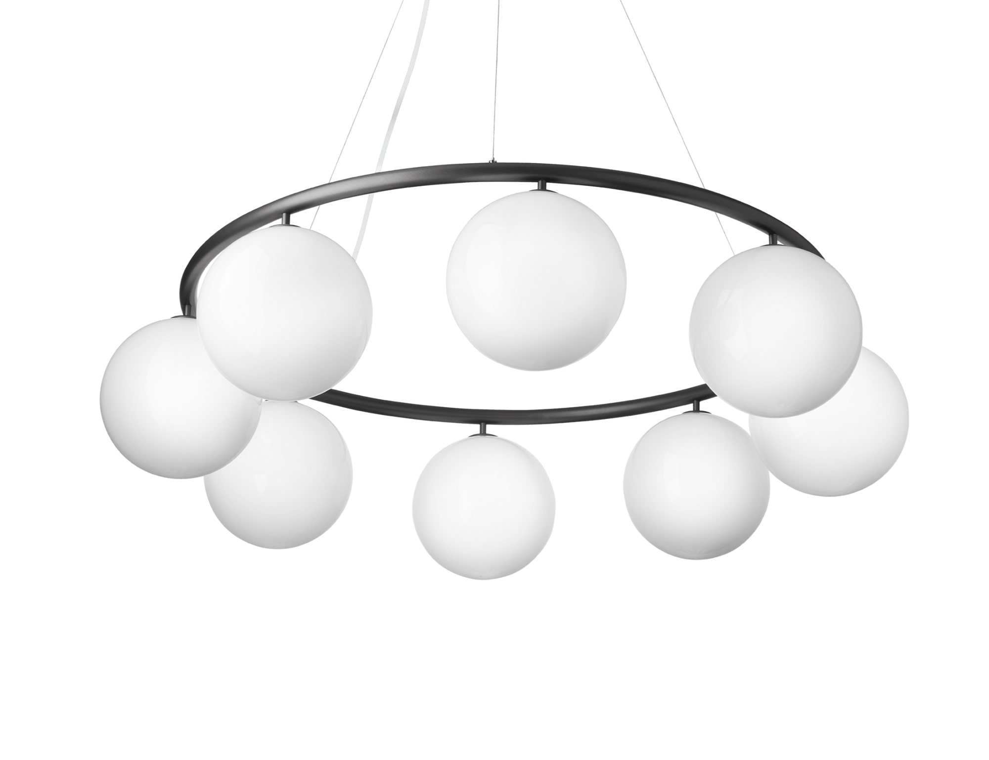 Moreover, the Miira 8 Circular Pendant combines opal and diamond-embossed glass globes, suspended from a sturdy powder-coated metal frame. This design is ideal for those seeking scandinavian lighting that marries both contemporary and traditional elements. Whether hung in a living room, a hallway, or above a dining table, it enhances the ambiance and provides the perfect balance of elegance and light.
