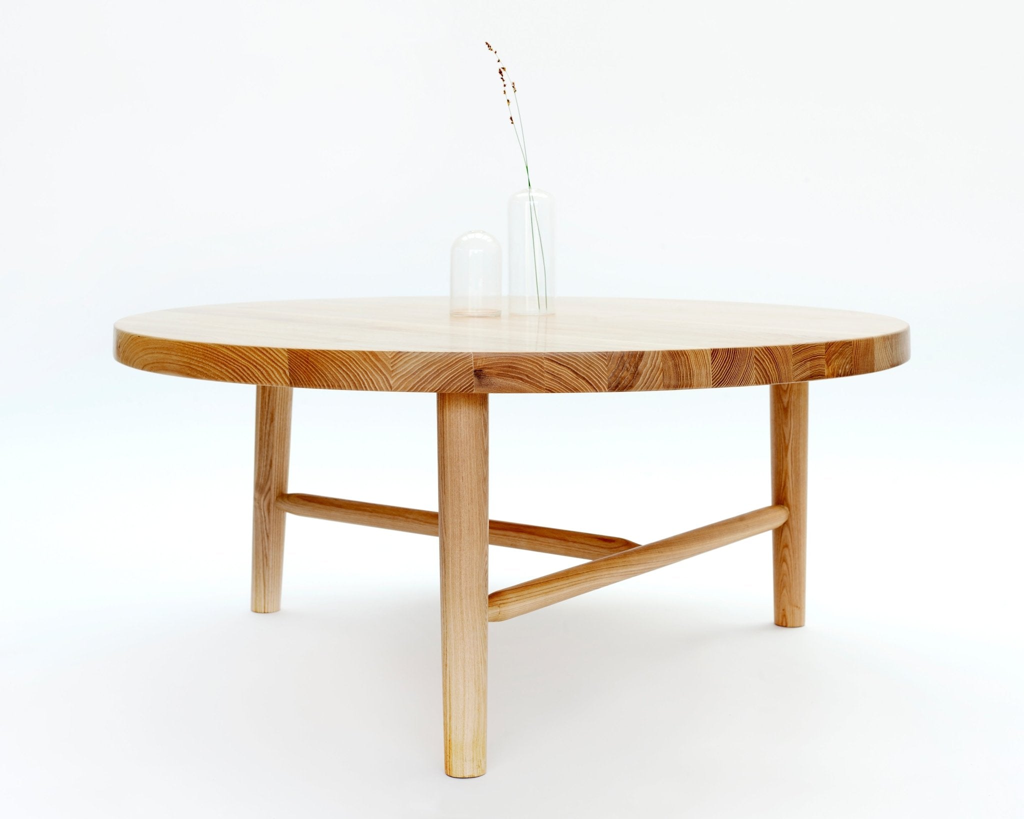 Crafted from solid ash, the MASH Studios Milking Table LAX Series - 36"Dia is both durable and striking. The matte clear finish highlights the natural beauty of the wood. Its minimalist aesthetic fits perfectly into any modern furniture arrangement. Whether used as a round coffee table or accent piece, it adds elegance to any space.