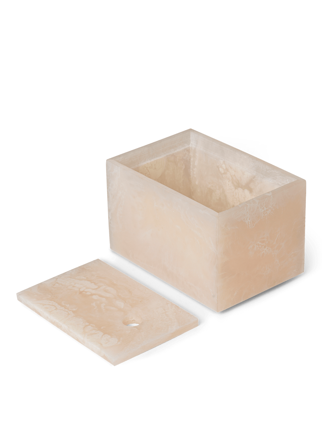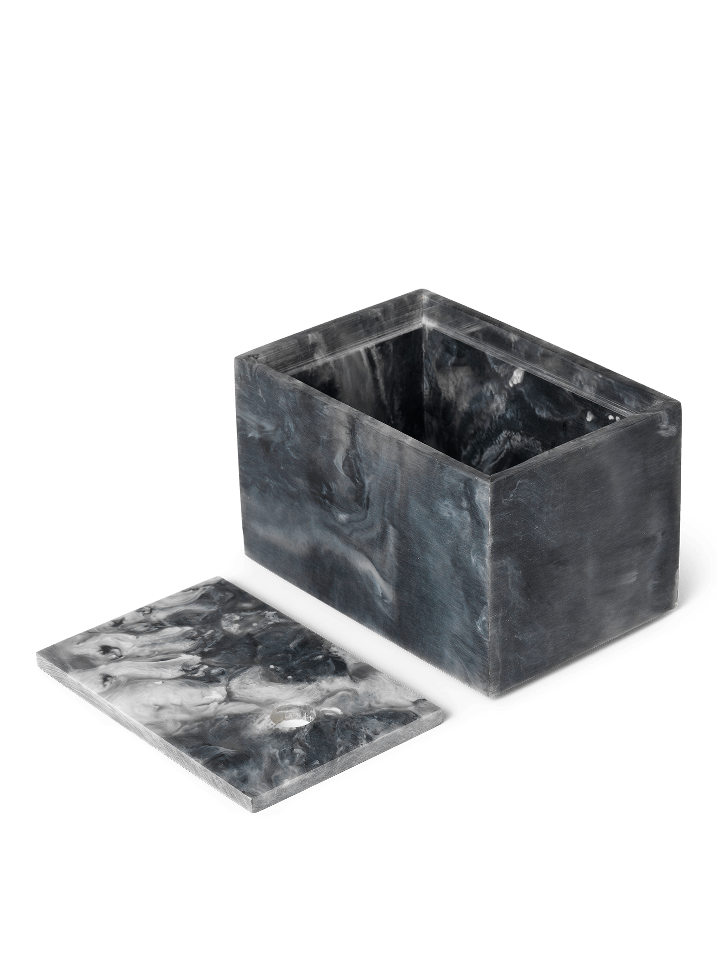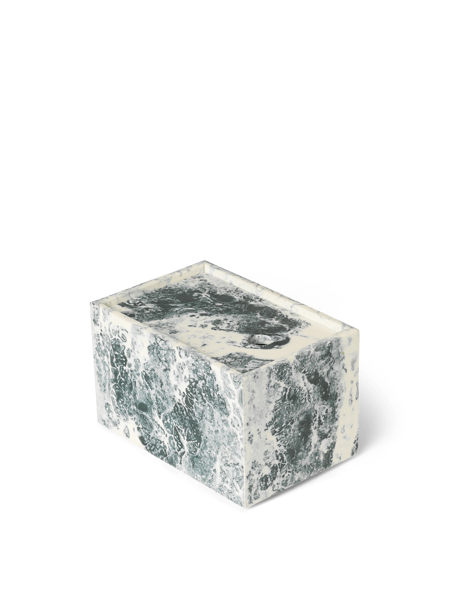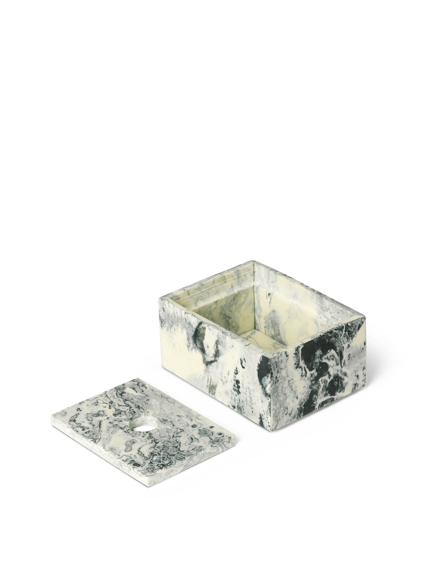 The Mist Series offers a sophisticated blend of playful geometry and functional design. Each piece in this whimsical series allows you to create your unique combination with interlocking, stackable forms. Crafted from a resin blend, the Mist Box features fluid, swirling shapes and ethereal tones, making each box truly one-of-a-kind. Perfect for bathroom storage, stationery, or as a treasure box, the lid effortlessly slots atop the base with a small cut-out for easy access. Available in various sizes and sold separately, the Mist Box meets a range of home storage needs with elegance and style.