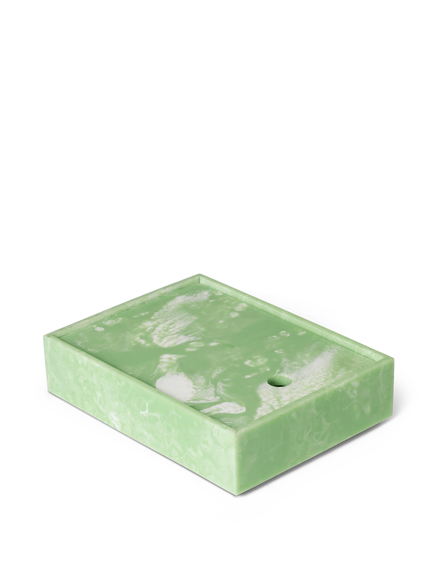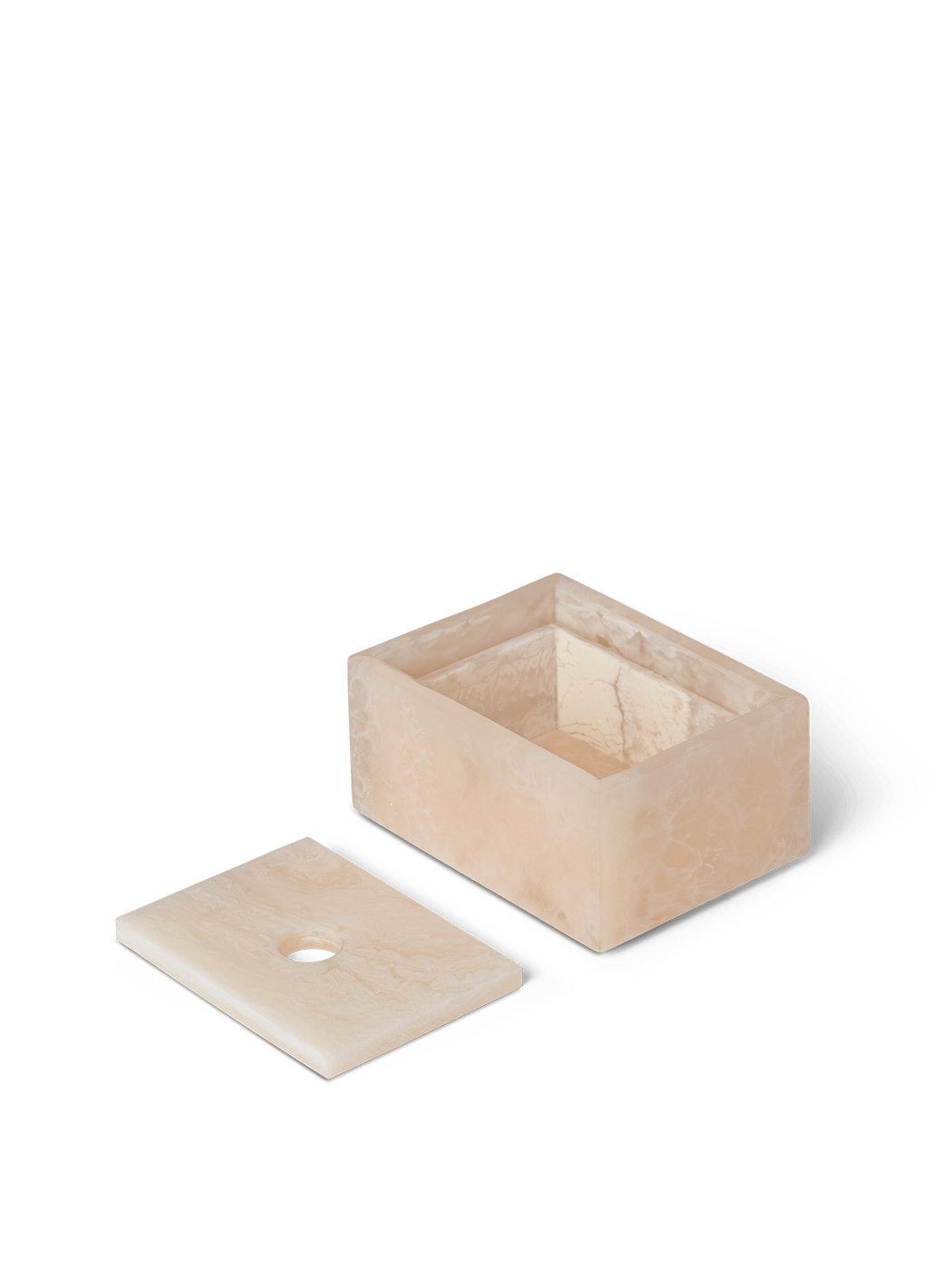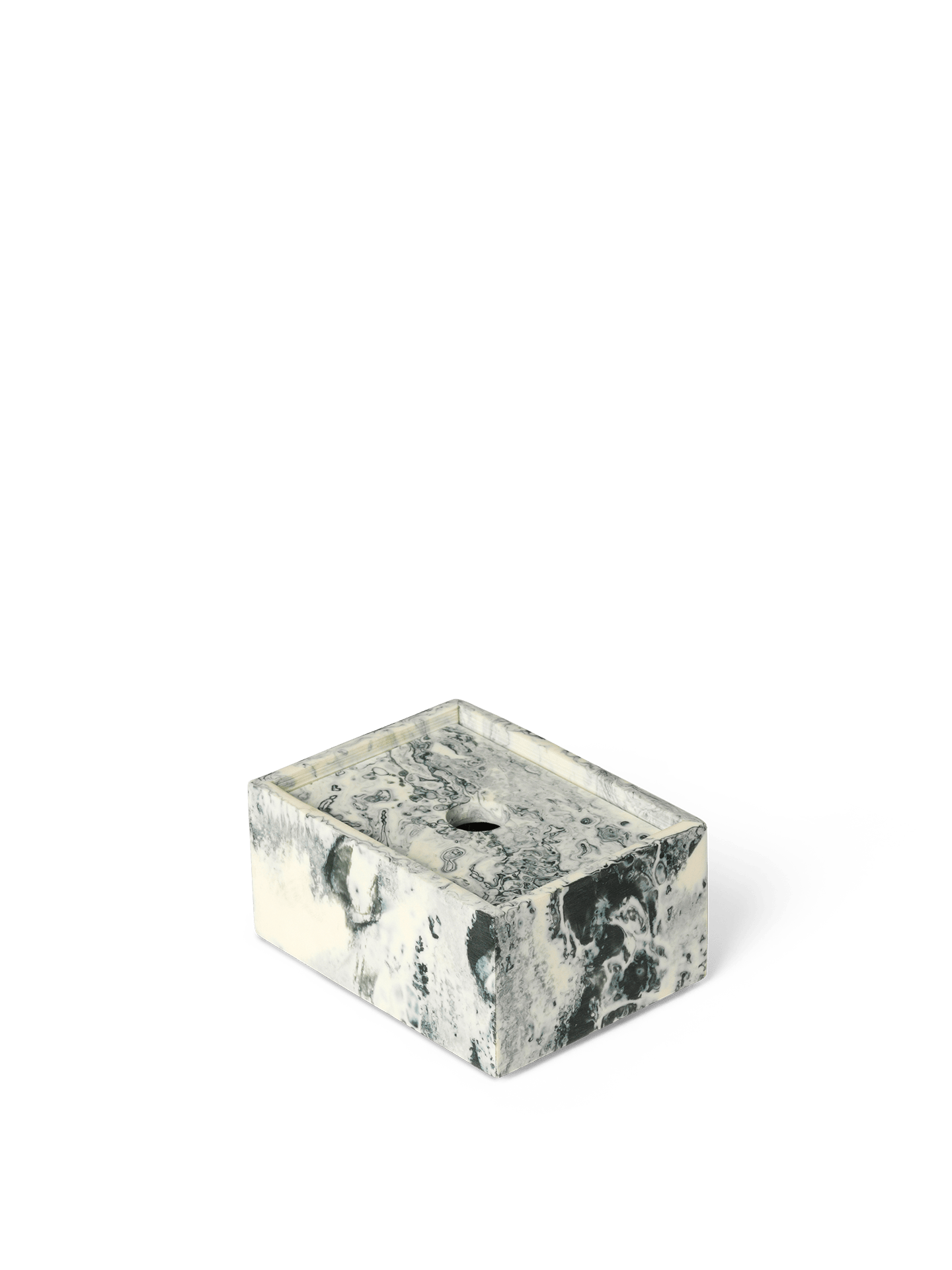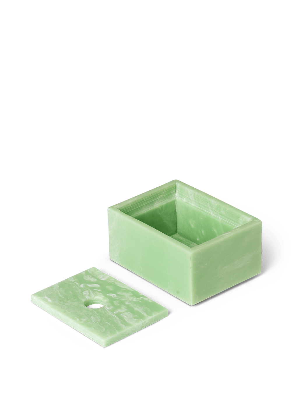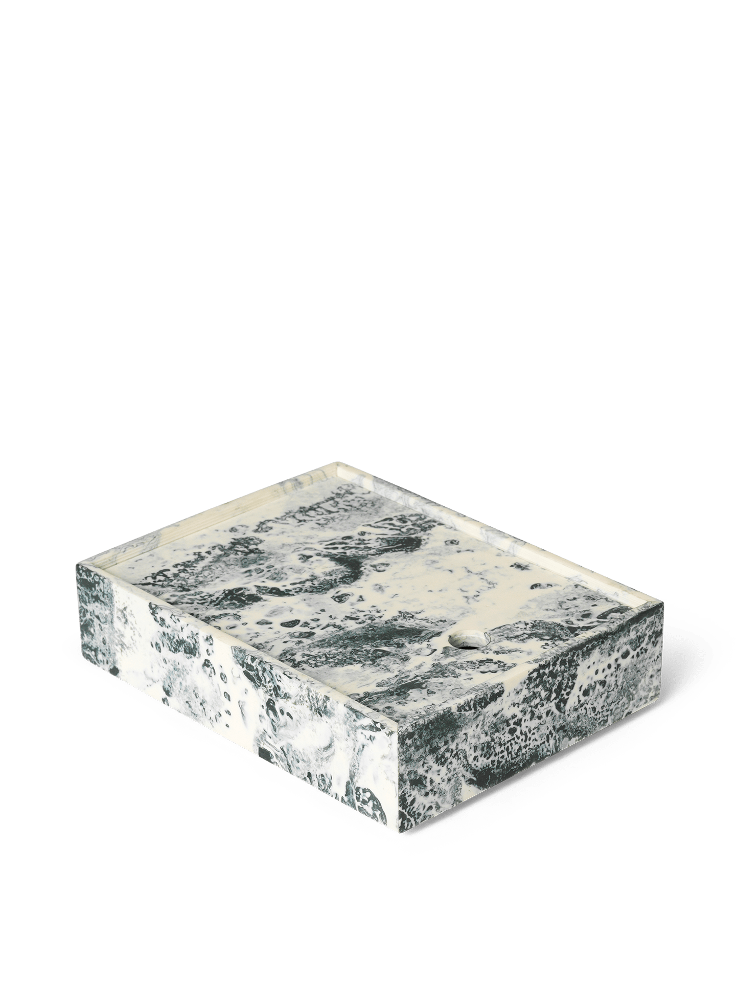 The Mist Series offers a sophisticated blend of playful geometry and functional design. Each piece in this whimsical series allows you to create your unique combination with interlocking, stackable forms. Crafted from a resin blend, the Mist Box features fluid, swirling shapes and ethereal tones, making each box truly one-of-a-kind. Perfect for bathroom storage, stationery, or as a treasure box, the lid effortlessly slots atop the base with a small cut-out for easy access. Available in various sizes and sold separately, the Mist Box meets a range of home storage needs with elegance and style.