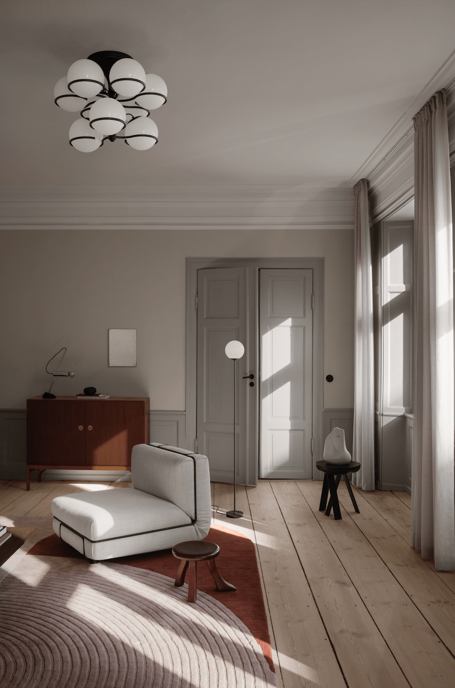 Both a functional ambient lighting solution and a sculptural focal point, the Model 2042 – 9 Opaline Spheres blends timeless mid-century design with modern performance. Its luminous glass globes and clean structural lines create a sophisticated centerpiece that complements a wide range of interiors—from minimalist and modern spaces to more transitional design environments.